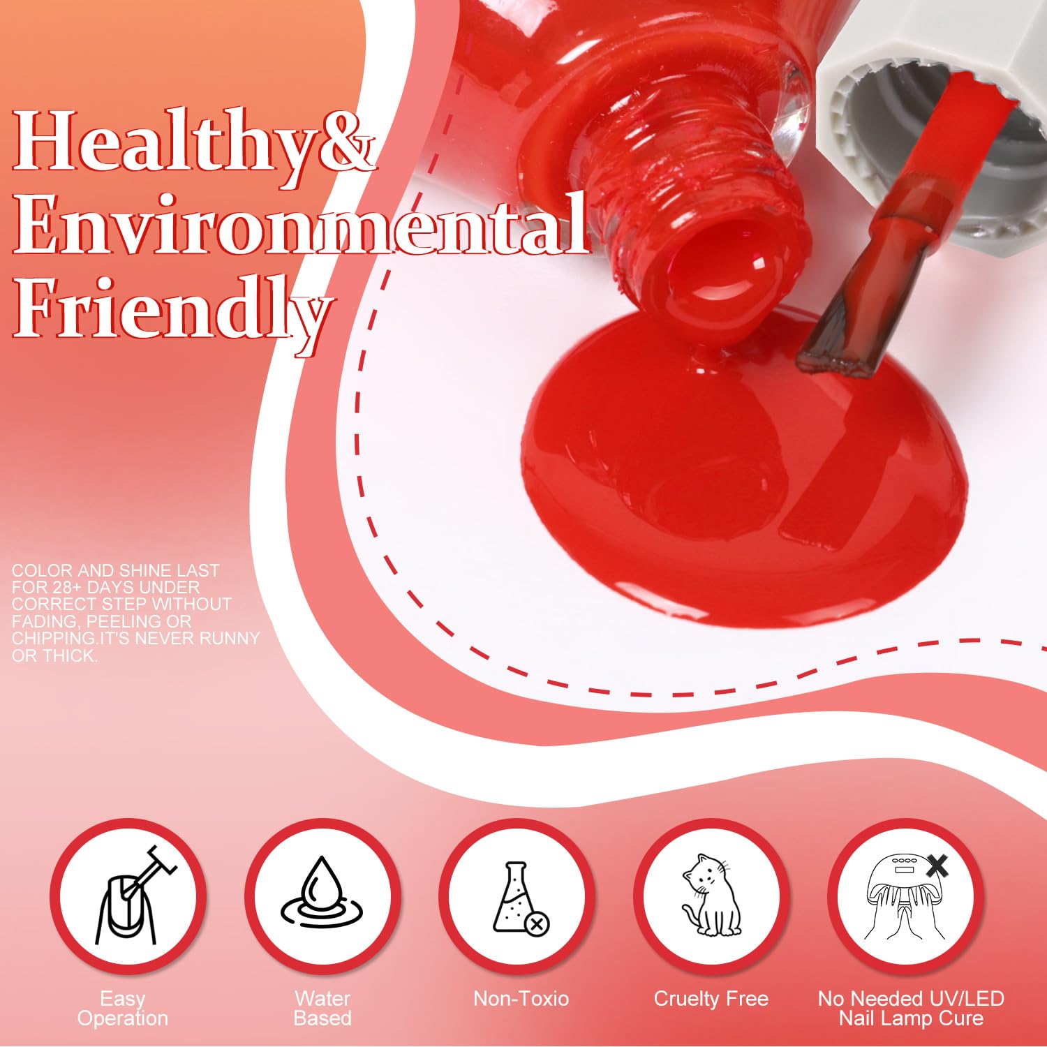 - NOTE: This nail polish is resistant to chipping and peeling, but for a longer-lasting shine, we recommend applying a top coat to keep the gloss for over 15 days!