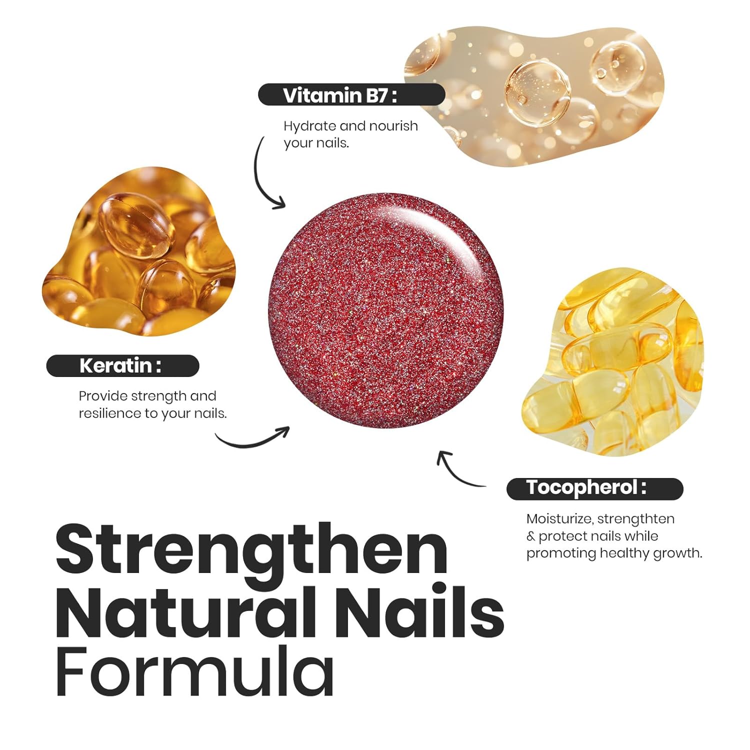 - 【Nail Care Ingredients】: Beetles 6 colors silver pink gold brown black red nail polish free of harmful substances, natural organic formula including keratin,vitamin B7 and tocopherol, which can strengthen and thicken nails and accelerate nail repair so that your nails have a beautiful appearance and also make your nails healthier!