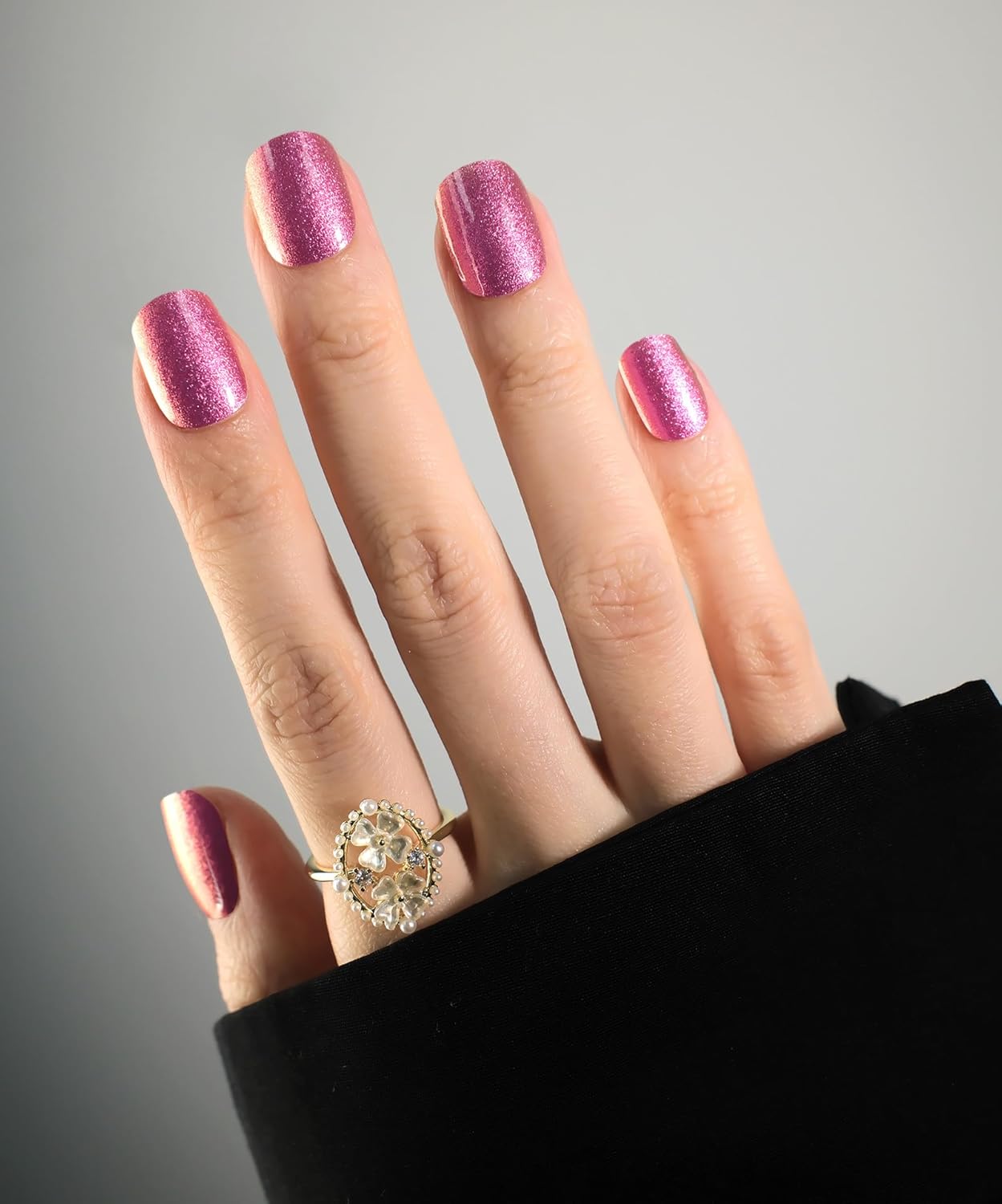 Glitter Nail Polish Strips, 32 Pcs Salon Quality Gel Nail Stickers, Long Lasting Wraps Easy to Use & Remove (Glitter Rose Pink)