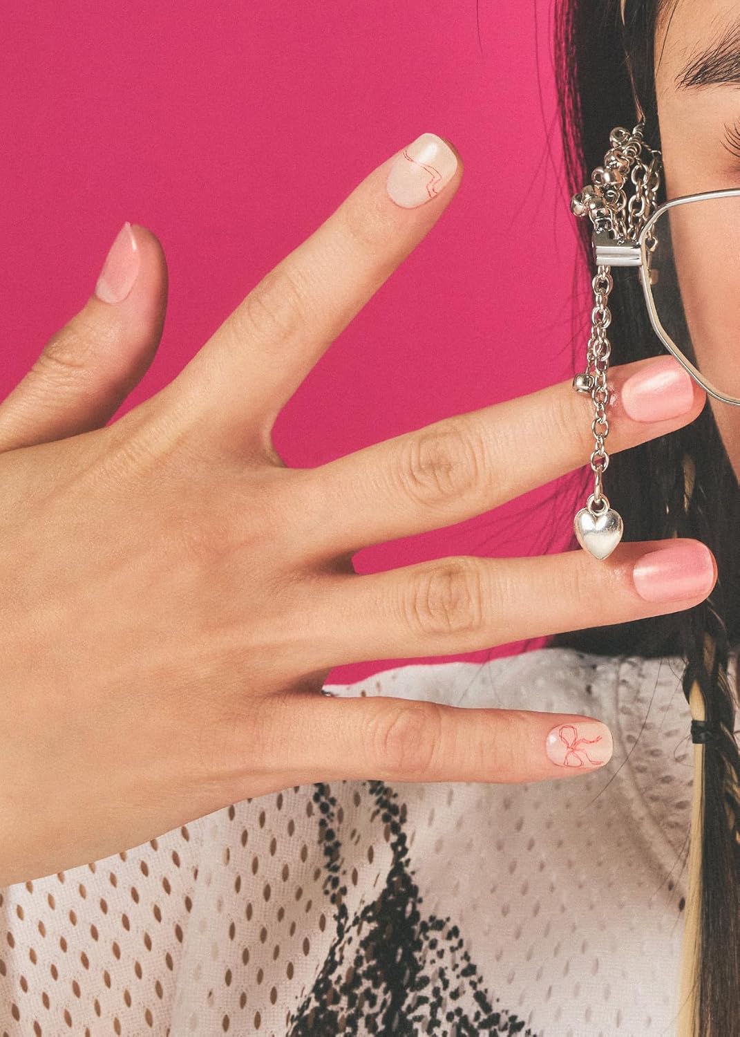 ohora Semi Cured Gel Nail Strips (N Someday) - White, Pink, Ribbon, Works with Any UV/LED Lamps, Salon-Quality, Long Lasting, Easy to Apply & Remove - Includes 2 Prep Pads, Nail File & Wooden Stick