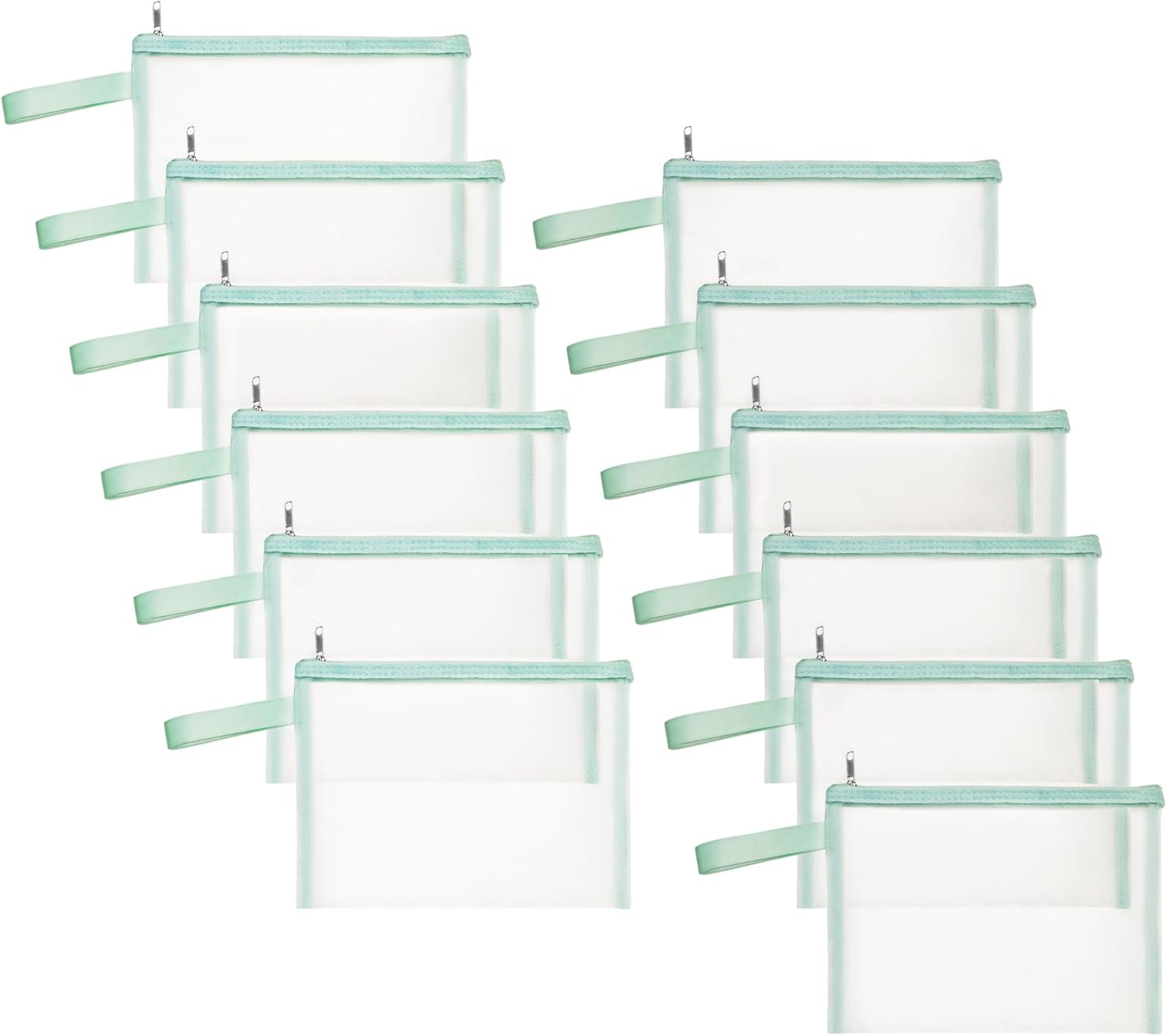 12 Psc Mesh Zipper Pouch Bags,Small Comestic Makeup Bage For Travel, Purse Organizer Pouches (Apple Green, A5*12)