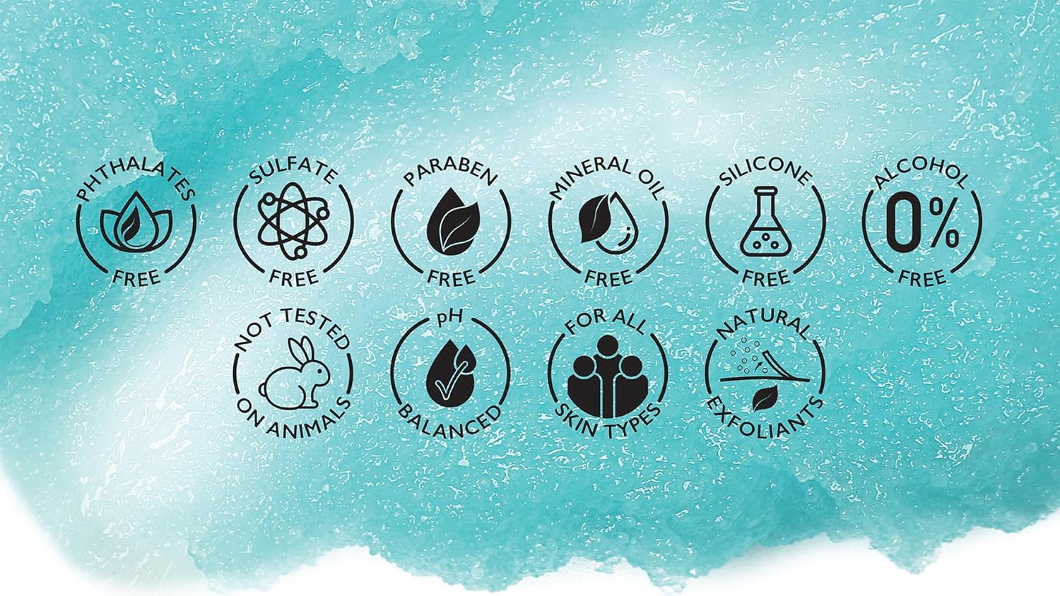 - Clean Beauty: We prioritize your well-being and the environment. Our body scrub is free from harsh chemicals, parabens, and sulfates. We are committed to using only cruelty-free and clean ingredients, like natural exfoliants that are biodegradable
