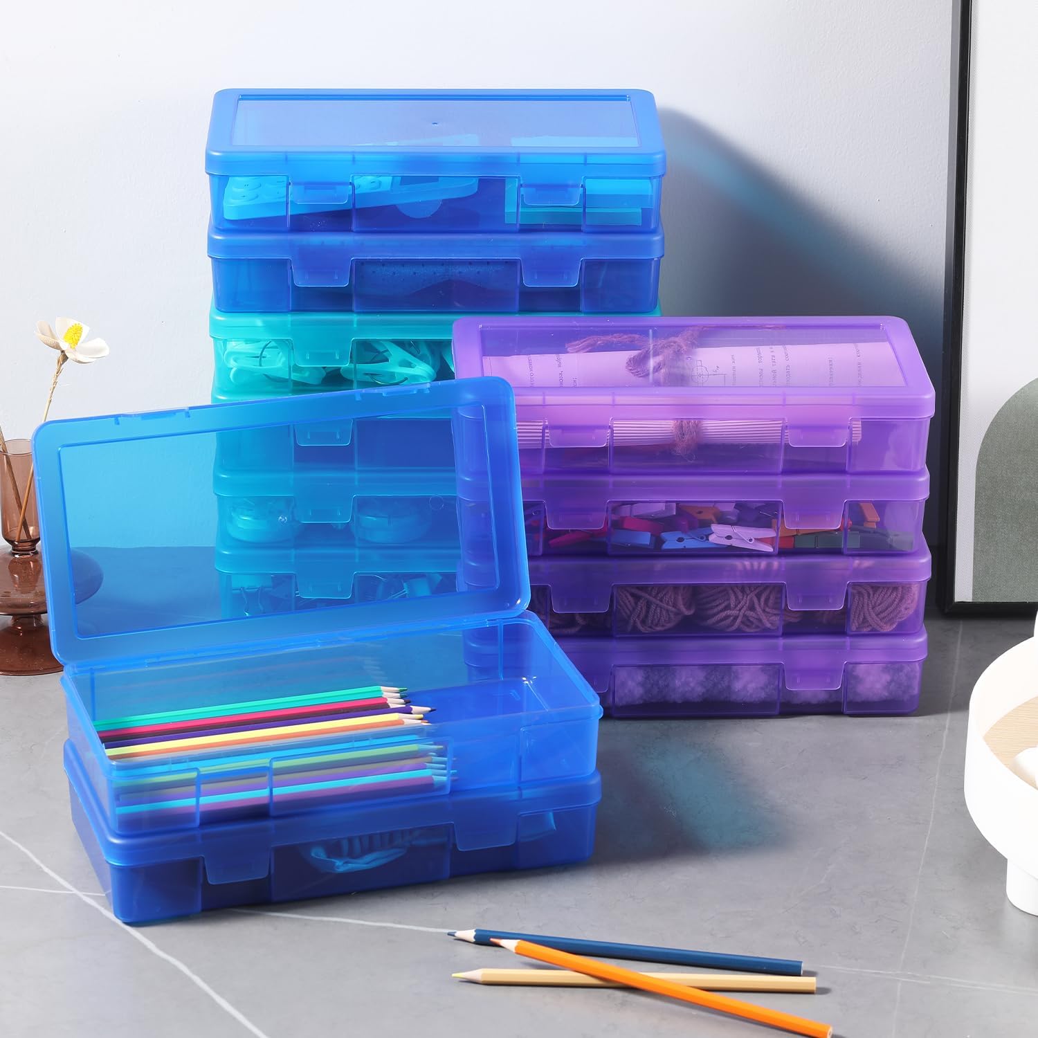 9 Pack Plastic Storage Containers Color Arts & Crafts Storage Boxes & Organizers Stackable Containers With Lids For Organizin (Set 4)