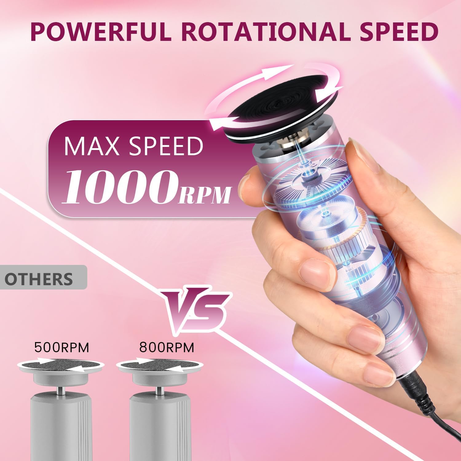 - Color : 1000r/Min Electric Foot File Grinder Pink