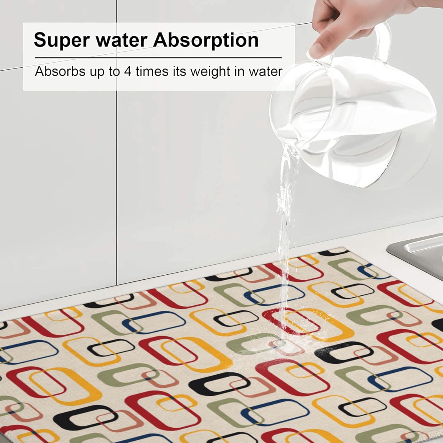 Mid Century Modern Retro Kitchen Drying Mat Vintage Decorative Microfiber Dish Drainer Mat for Kitchen Counter Absorbent Reusable Washable 18x24 Inch