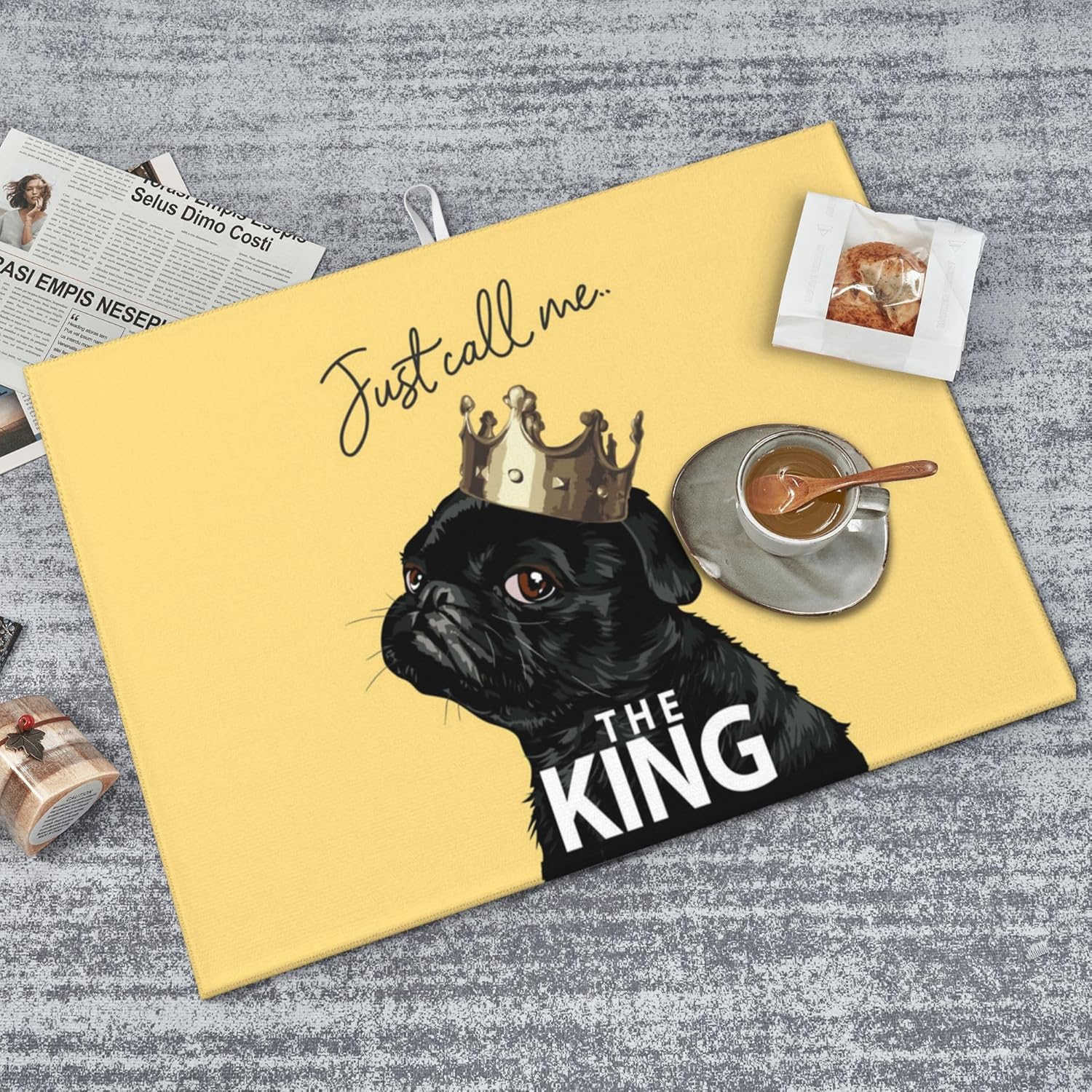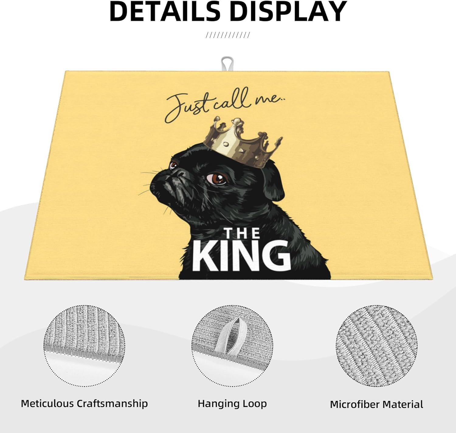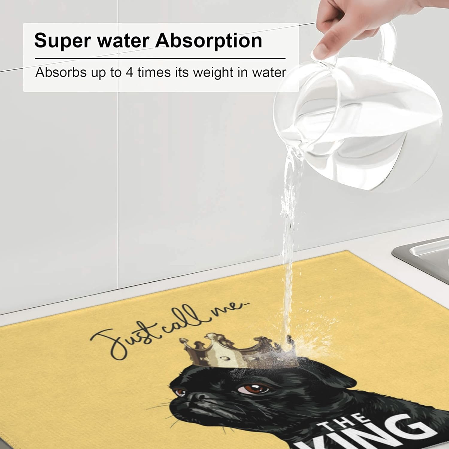 Funny Bulldog Dish Drying Mat for Kitchen Counter Cute Dog Drying Pad 18x24 Inch Yellow Absorbent Reversible Dish Drainer Rack Mats