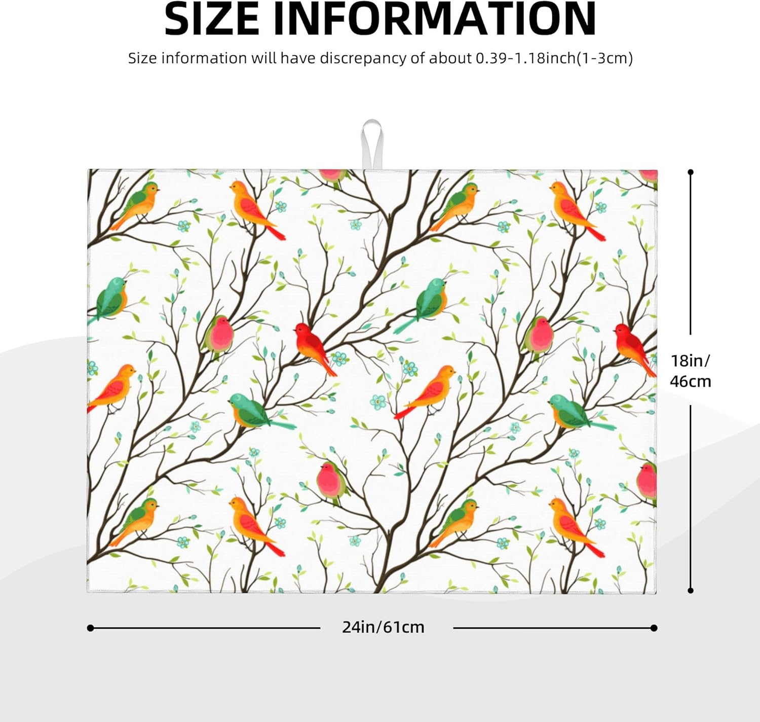 Cute Birds Kitchen Drying Mat Birds on Tree Microfiber Dish Drainer Mat for Kitchen Counter Absorbent Reusable Washable 18x24 Inch