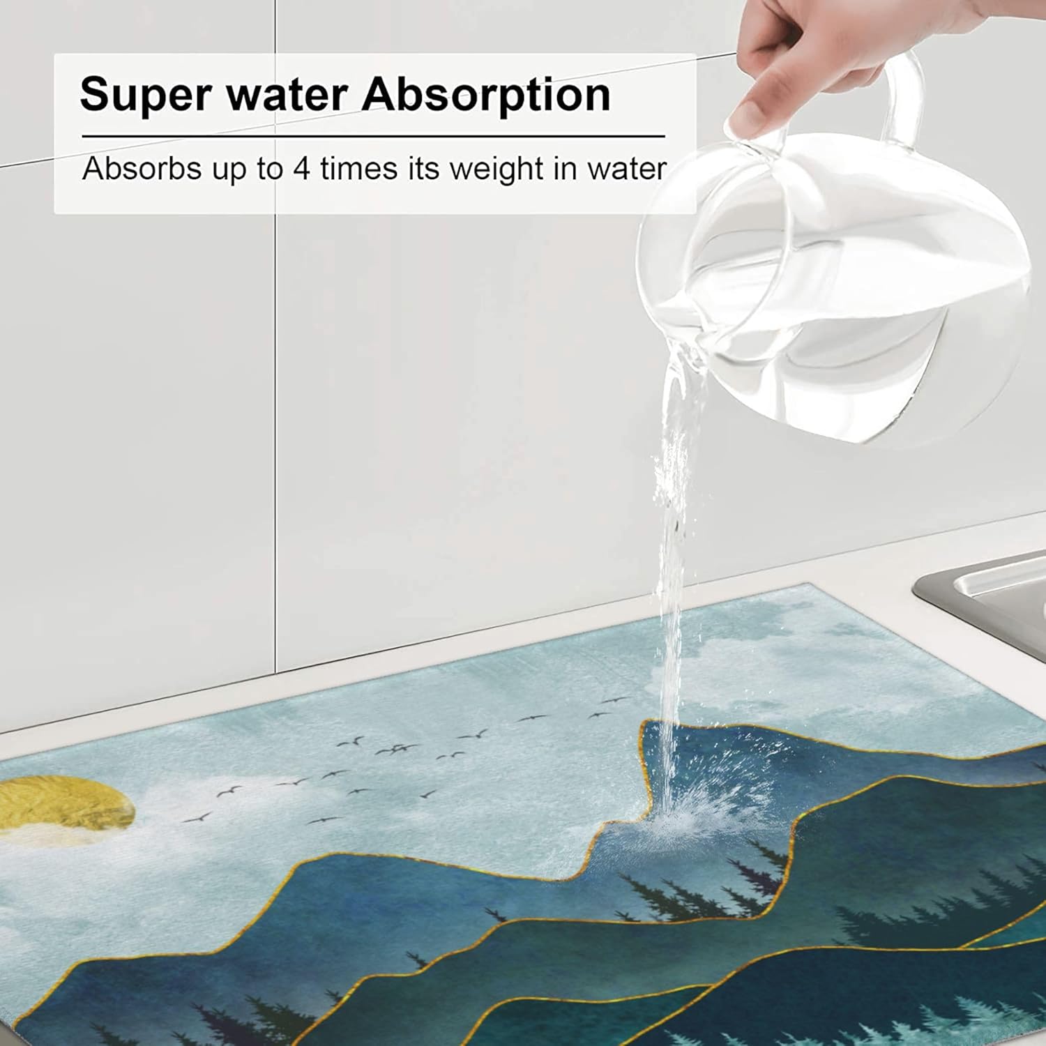Mountain Peaks Nature Landscape Microfiber Dish Drying Mat for Kitchen Counter 18"x24" Modern Decorative Dishes Pad Dish Drainer Rack Mats Washable Absorbent Fast Dry