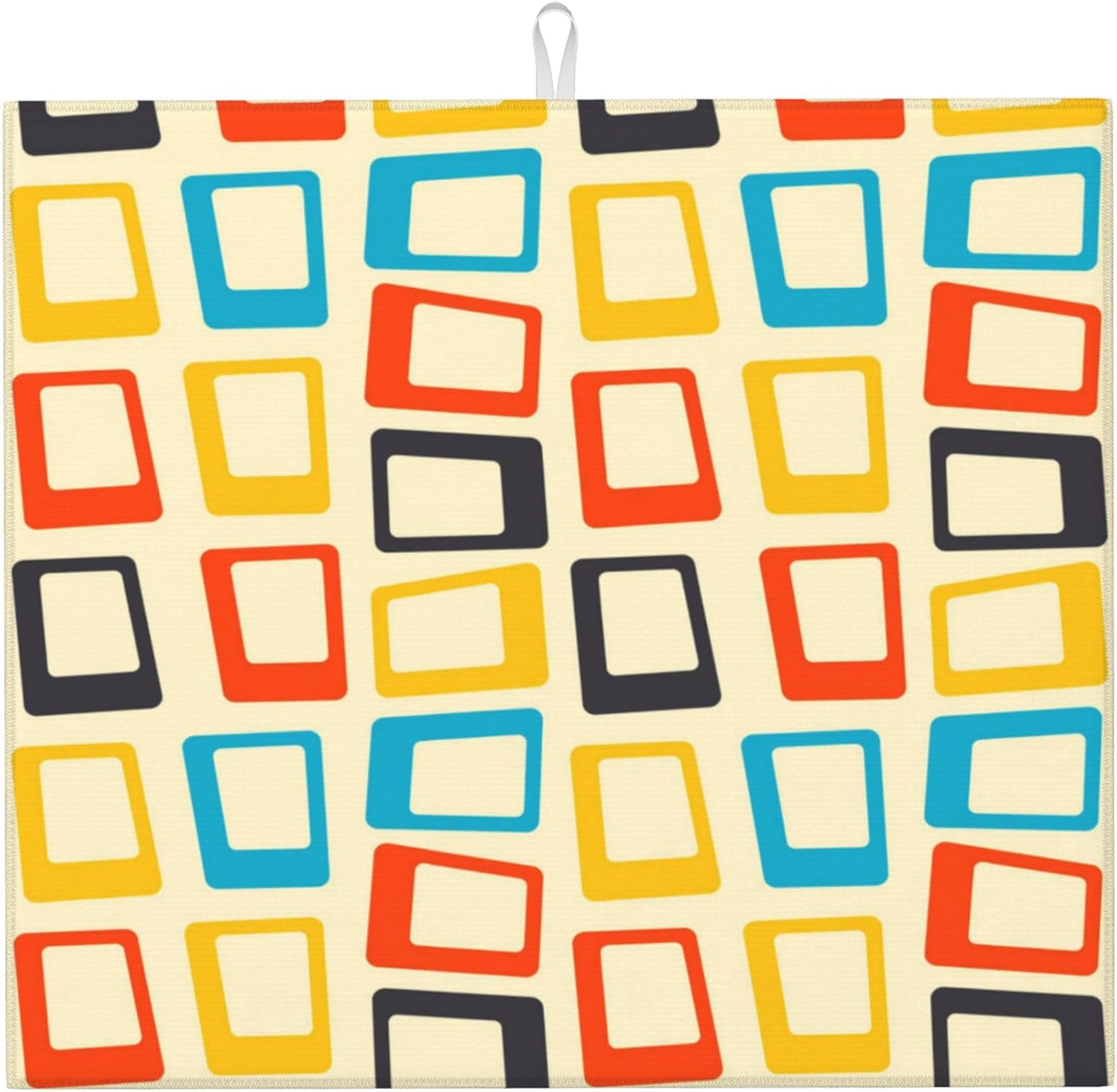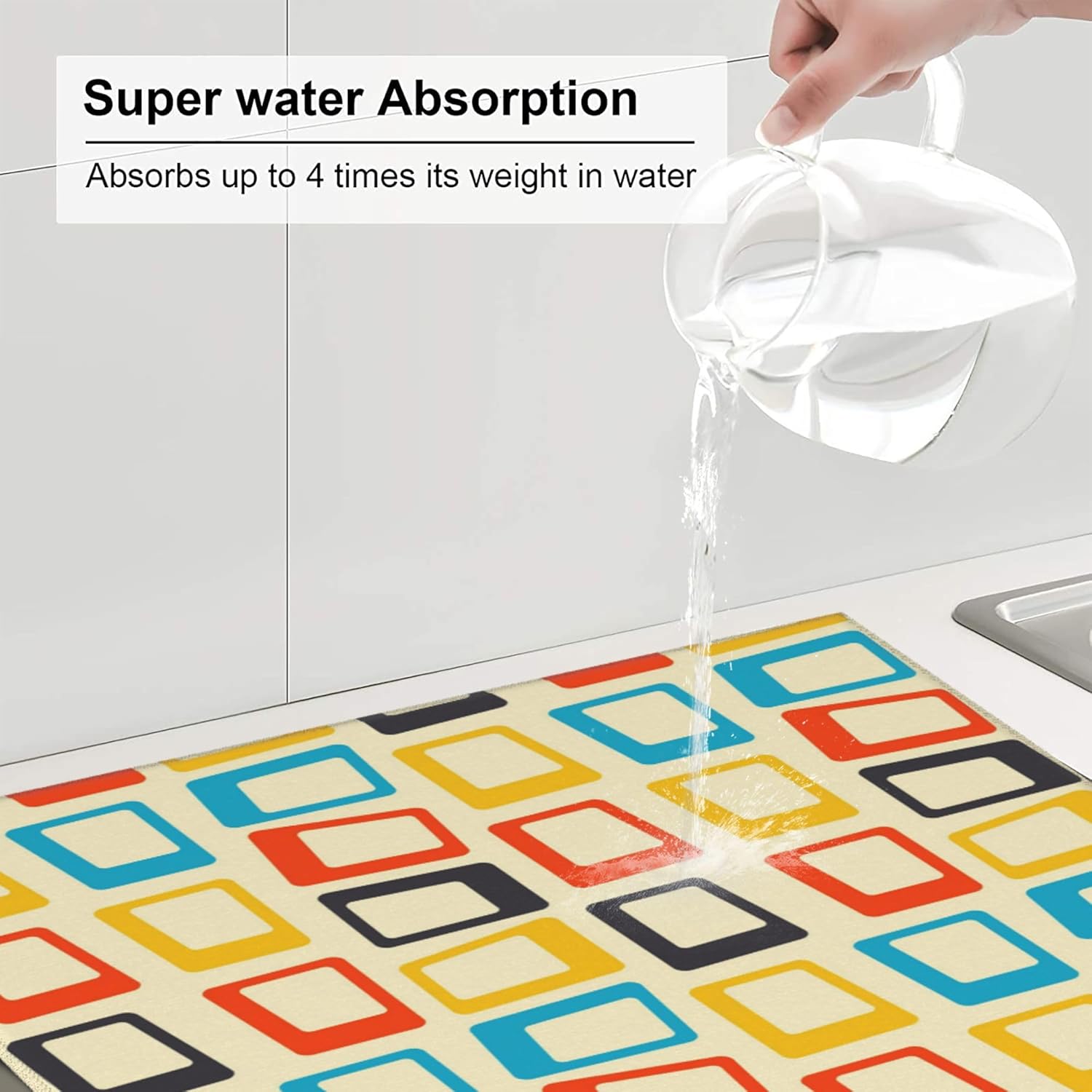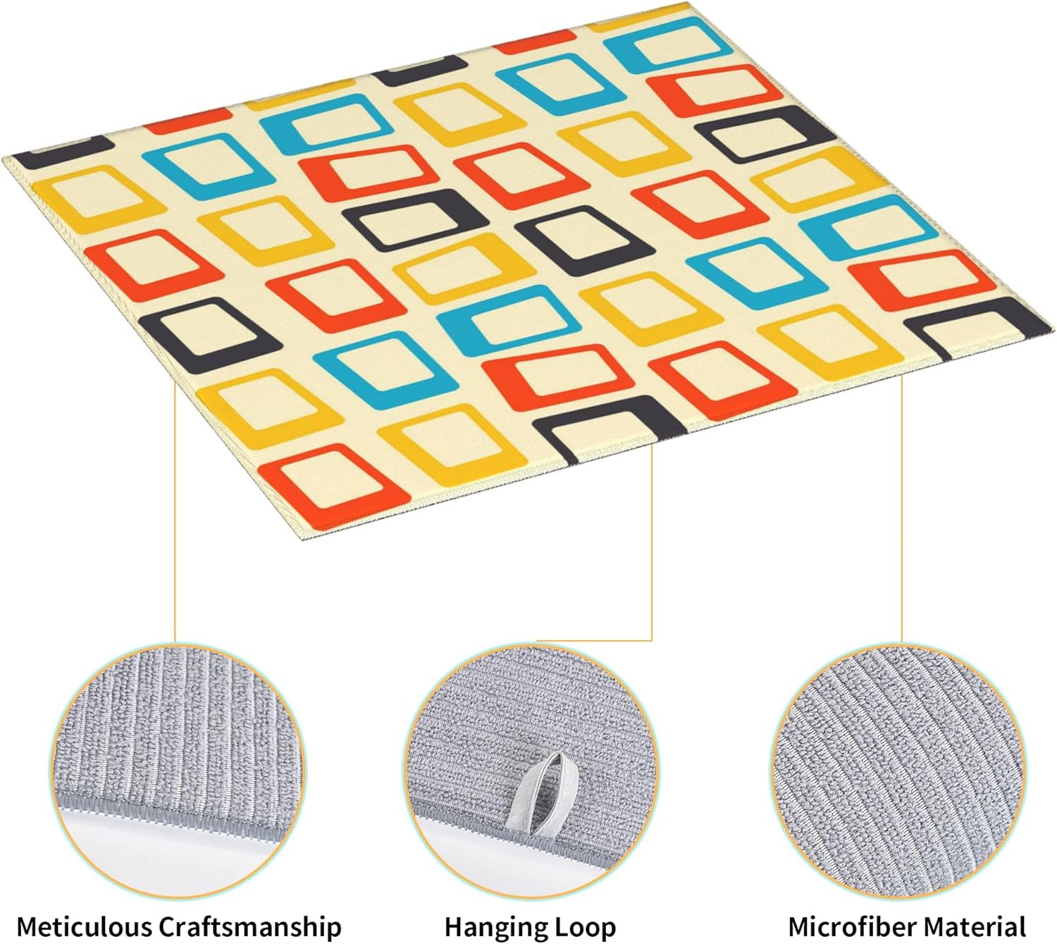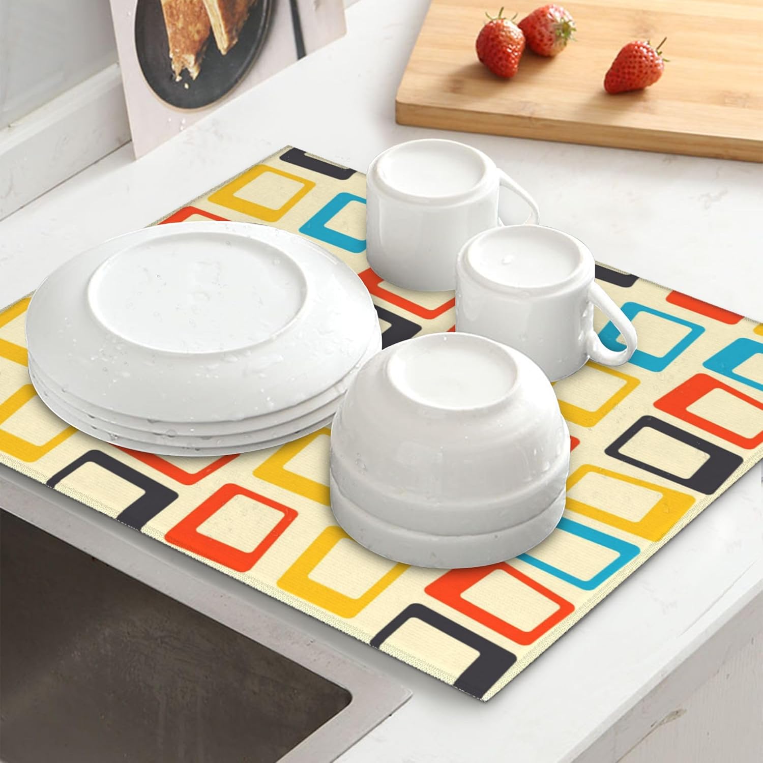 Mid Century Modern Dish Drying Mat for Kitchen Counter Washable Absorbent Reversible Microfiber Retro Drying Pad Kitchen Accessories 16x18 Inch