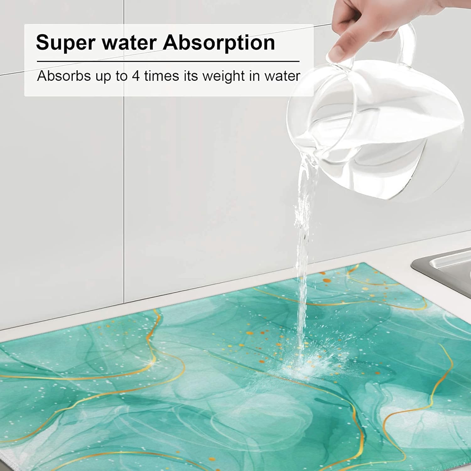Teal Gold Marble Dish Drying Mat for Kitchen Counter Green Turquoise Drying Pad 18x24 Inch Modern Absorbent Reversible Dish Drainer Rack Mats