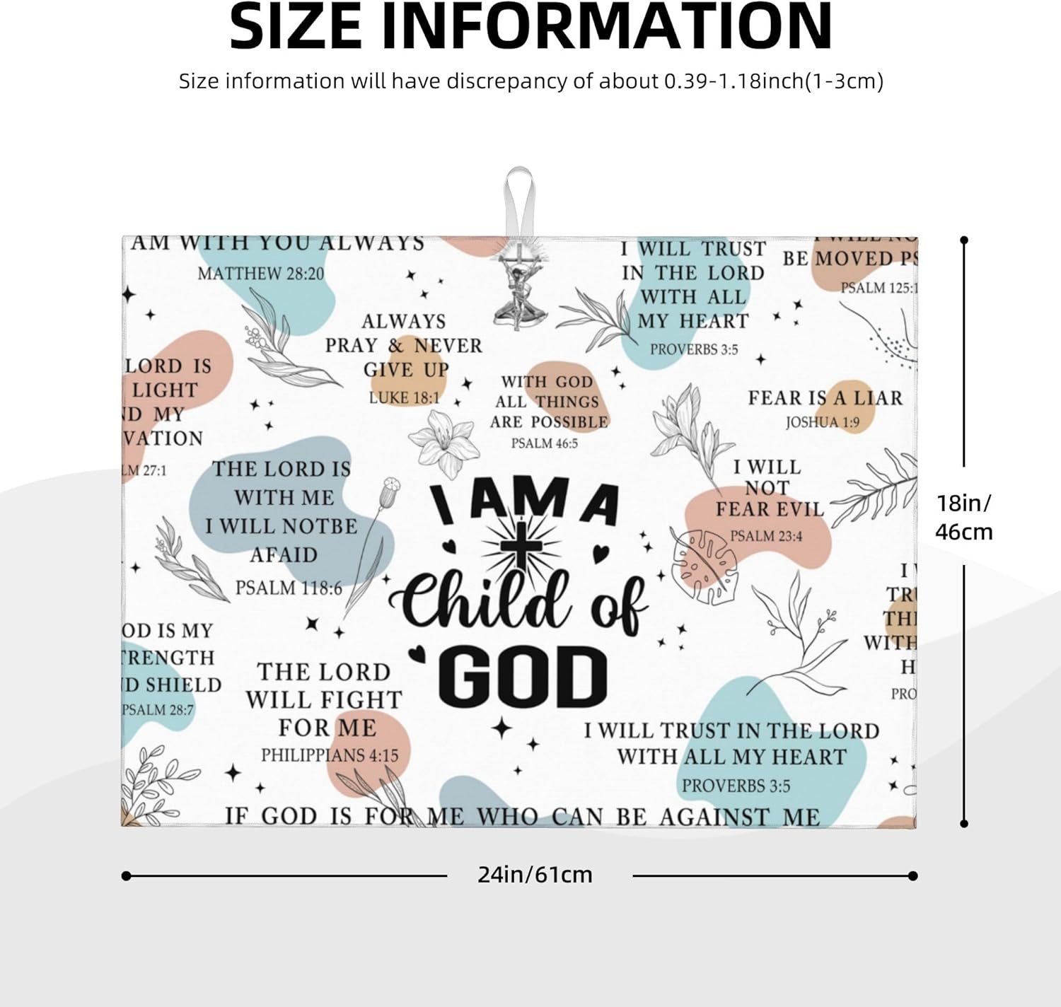 - Size: Christian Dish dry mat size is 16x18 inches or 18x24 inches