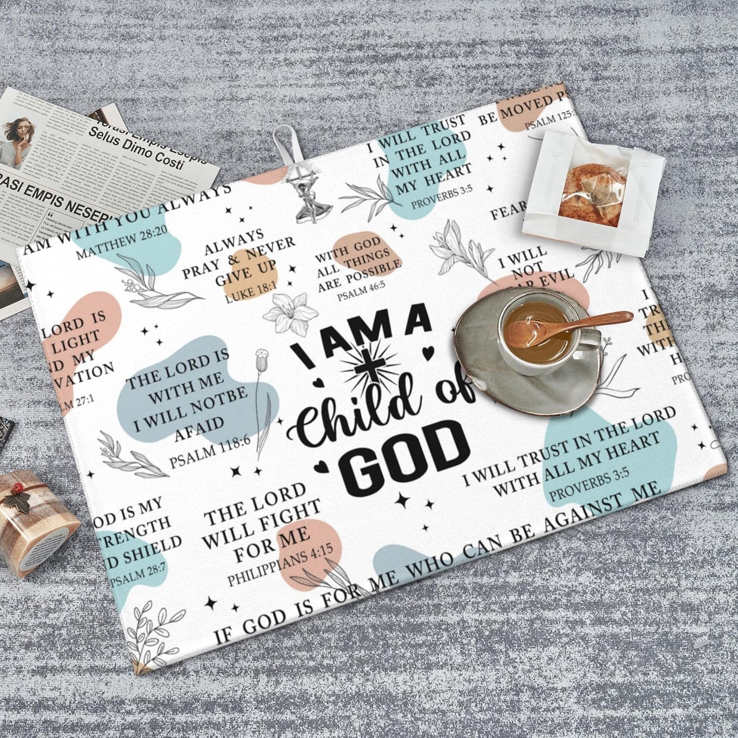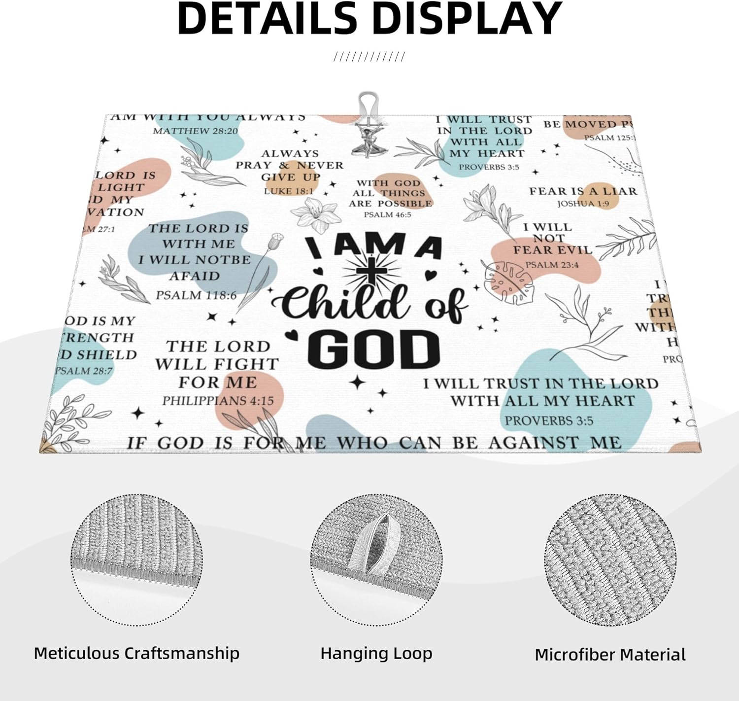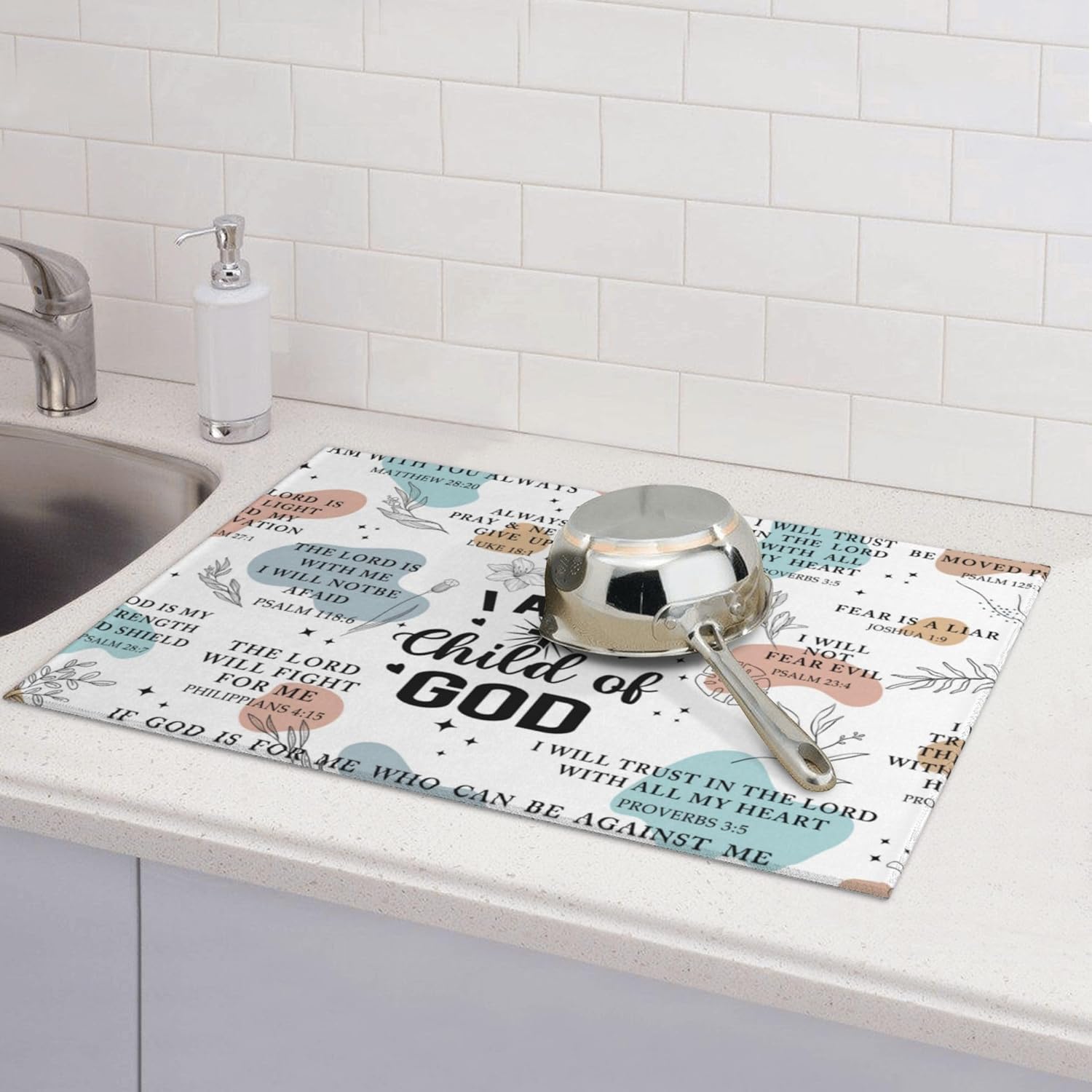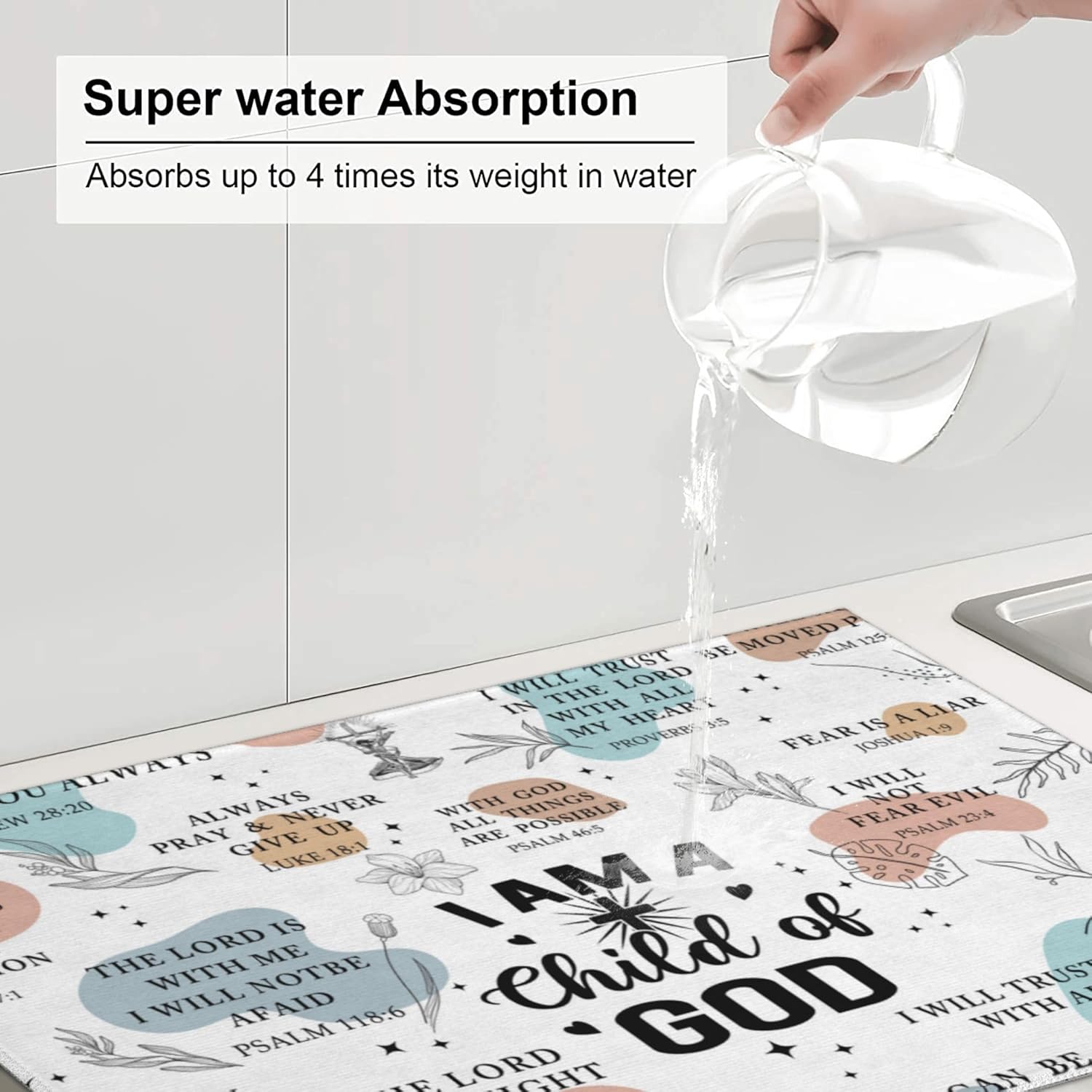 - Material: Bible Verse Dish drying pad is made of absorbing microfiber, and the middle is made of composite sponge, soft absorbent
