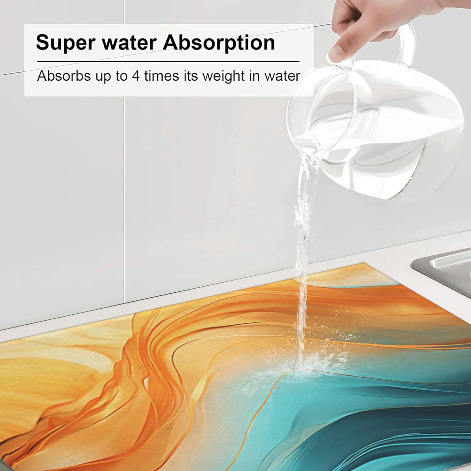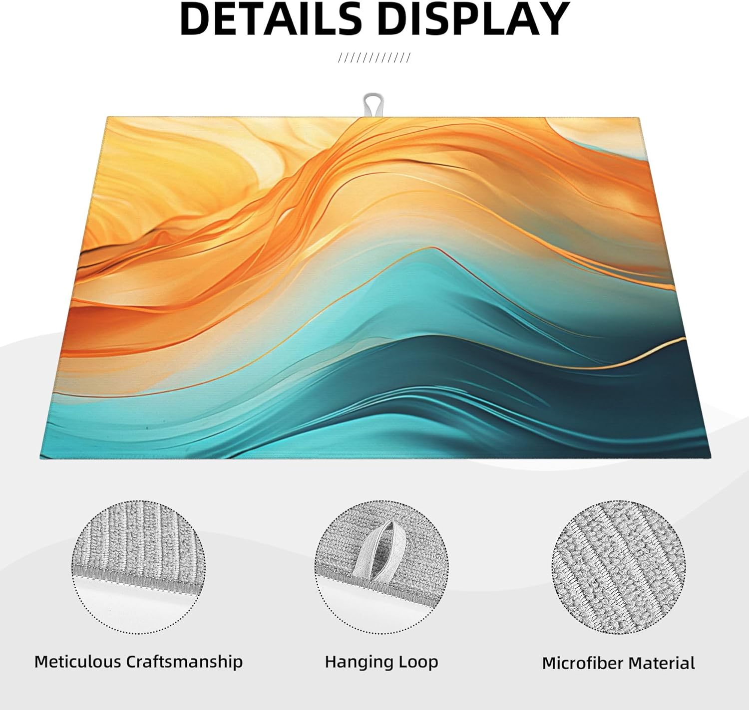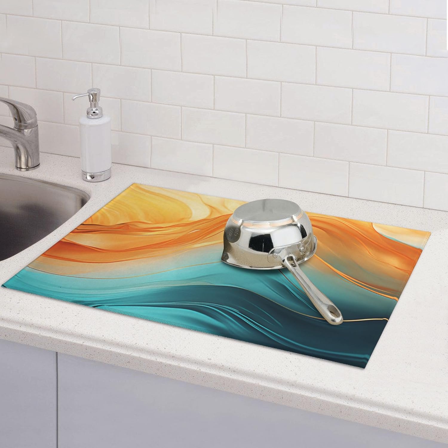 Orange Teal Marble Dish Drying Mat for Kitchen Decor Modern Dish Drainer Rack Mats Washable Absorbent Reversible Microfiber Drying Pad Kitchen Accessories 18"x24"