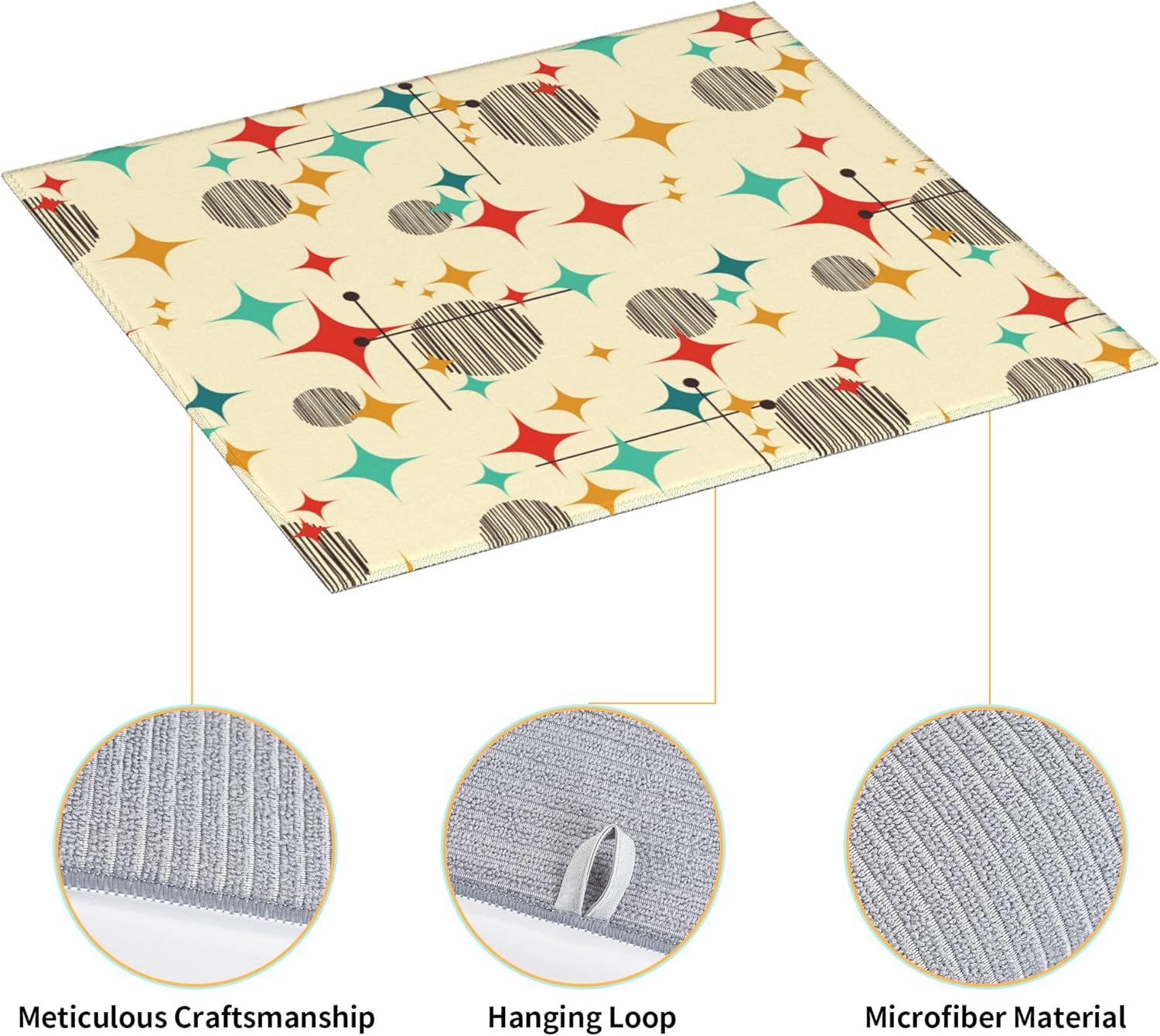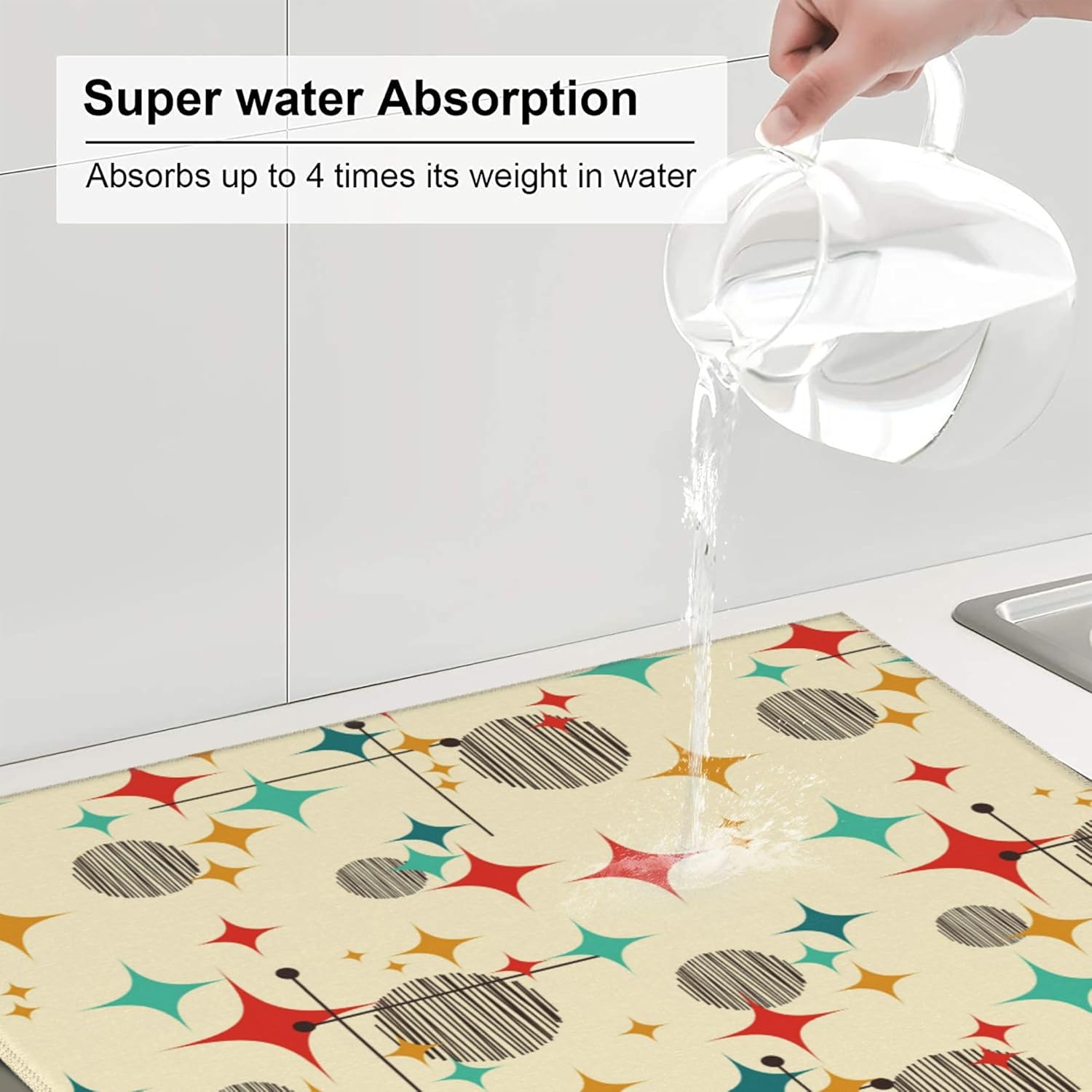 Mid Century Modern Atomic Retro Dish Drying Mat for Kitchen Counter Washable Absorbent Drying Mat Reversible Microfiber Yellow Drying Pad Home Holiday Decor Kitchen Accessories 16"x18"