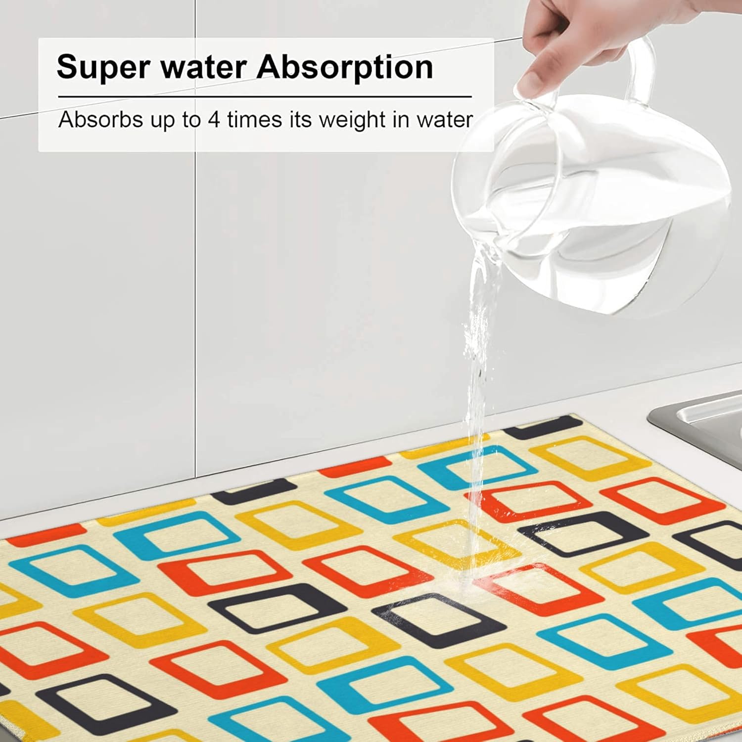 Mid Century Modern Dish Drying Mat for Kitchen Counter Decorative Drying Pad 18x24 Inch Absorbent Reversible Retro Dish Drainer Rack Mats