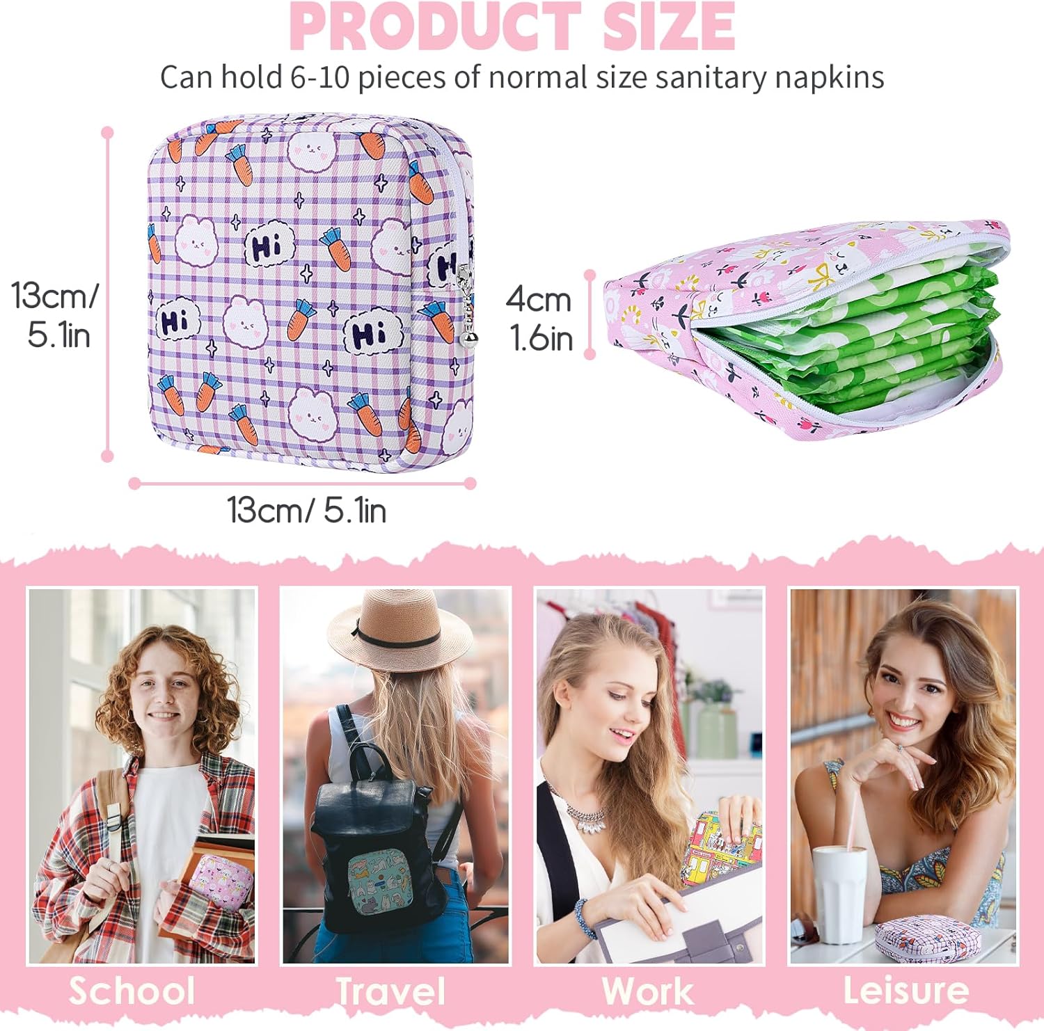 - 💕 【Premium Materials】- Our pads storage bag is made of soft and skin-friendly material. It is small and cute, durable and dirt-resistant. Perfect travel size to put in back packs or purse. Will be a nice gift for your family and friends.