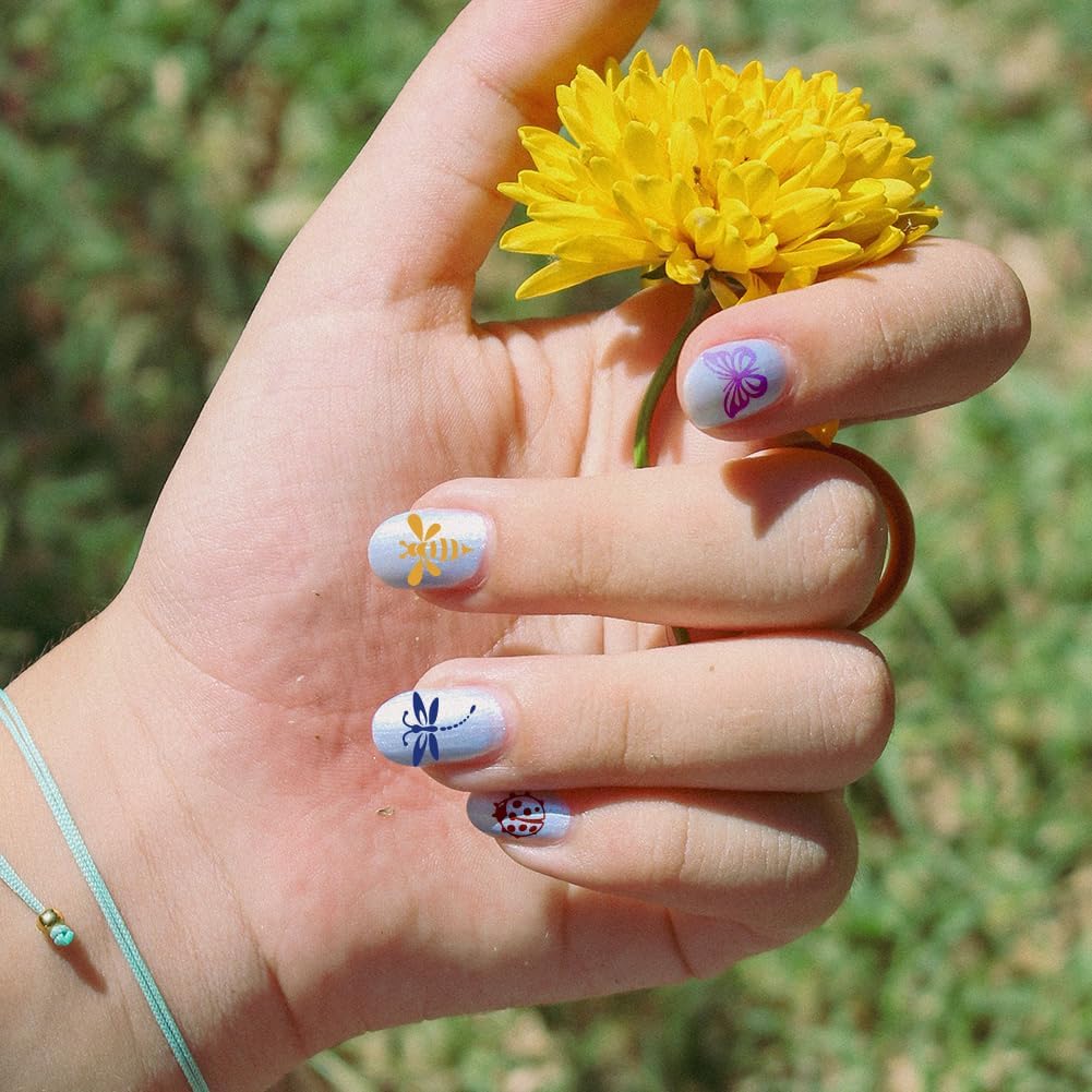 - Package Information: A total of 3 templates, butterflies, bees, dragonflies, moths, ladybugs patterns, randomly collocation, no need to hand-painted, convenient and fast, leading the nail fashion, the world at your fingertips jump