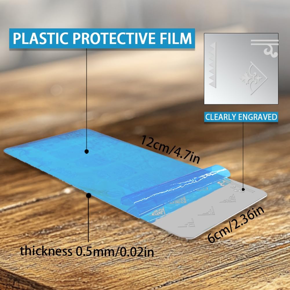 - Metal Material: Made of thick steel plate, not easy to fade, rust, steel plate surface with blue protective film to prevent scratches, clear lines, meticulous workmanship, different base colors present different effects. Size: 4.7Ă—2.36inch