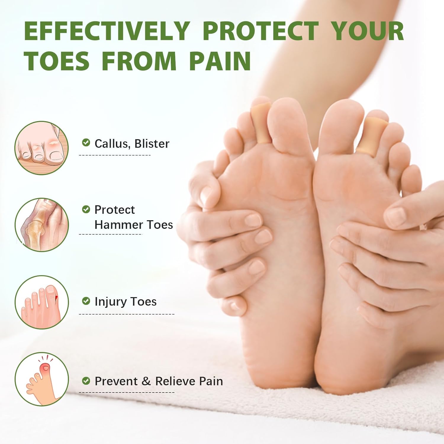 - Adaptable to Various Conditions: Our toe protectors are designed to treat corns and can also address issues such as blisters, calluses, and overlapping toes. They provide effective immediate protection, keeping painful areas on your feet free from friction