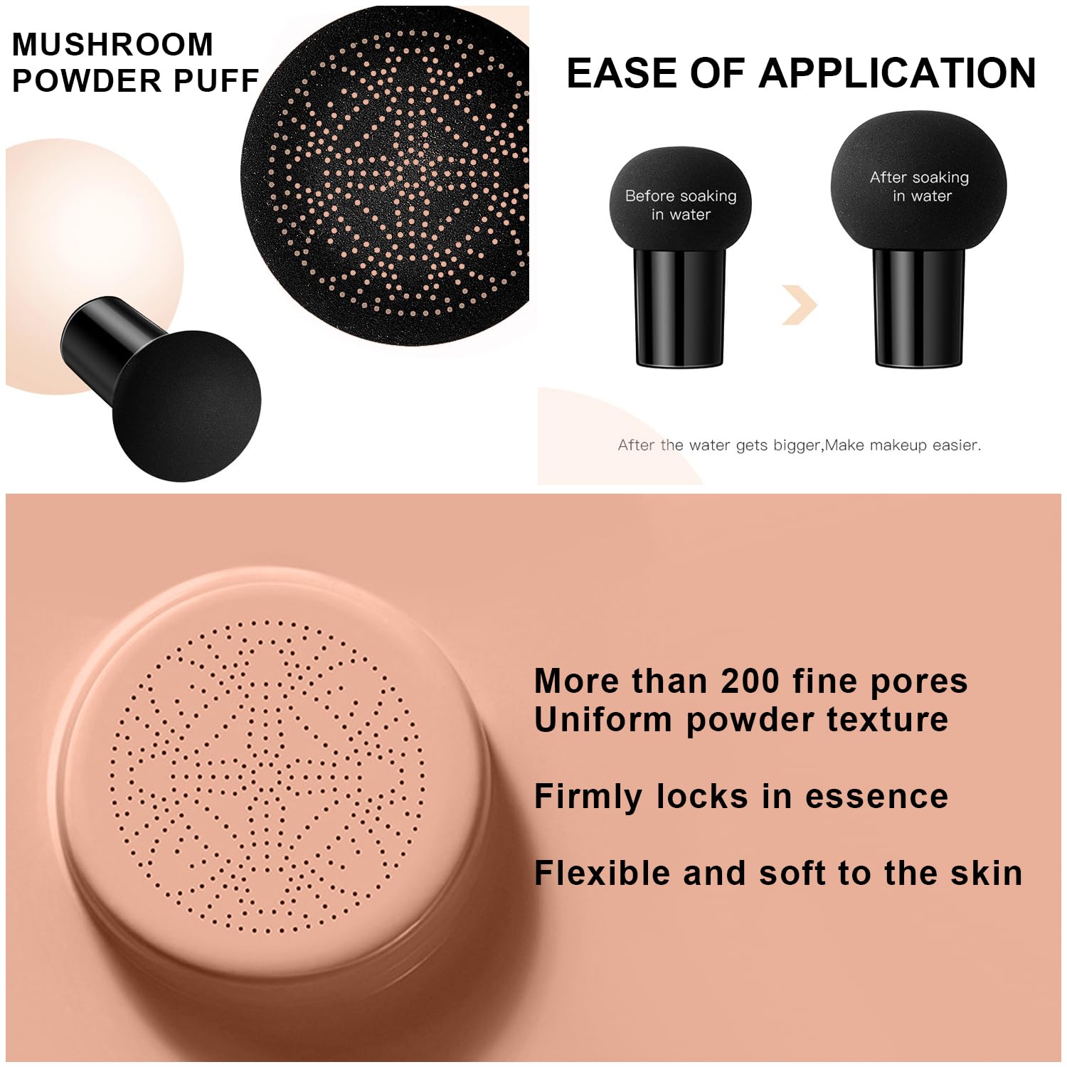 - 【Easy Makeup】The small mushroom puff has large elasticity, becomes larger and softer when exposed to water, is portable, skin-friendly, smooths fine lines, fits the hidden corners of the nose and other hidden corners, creating a uniform foundation in all directions. (Small mushrooms need to be cleaned before use)