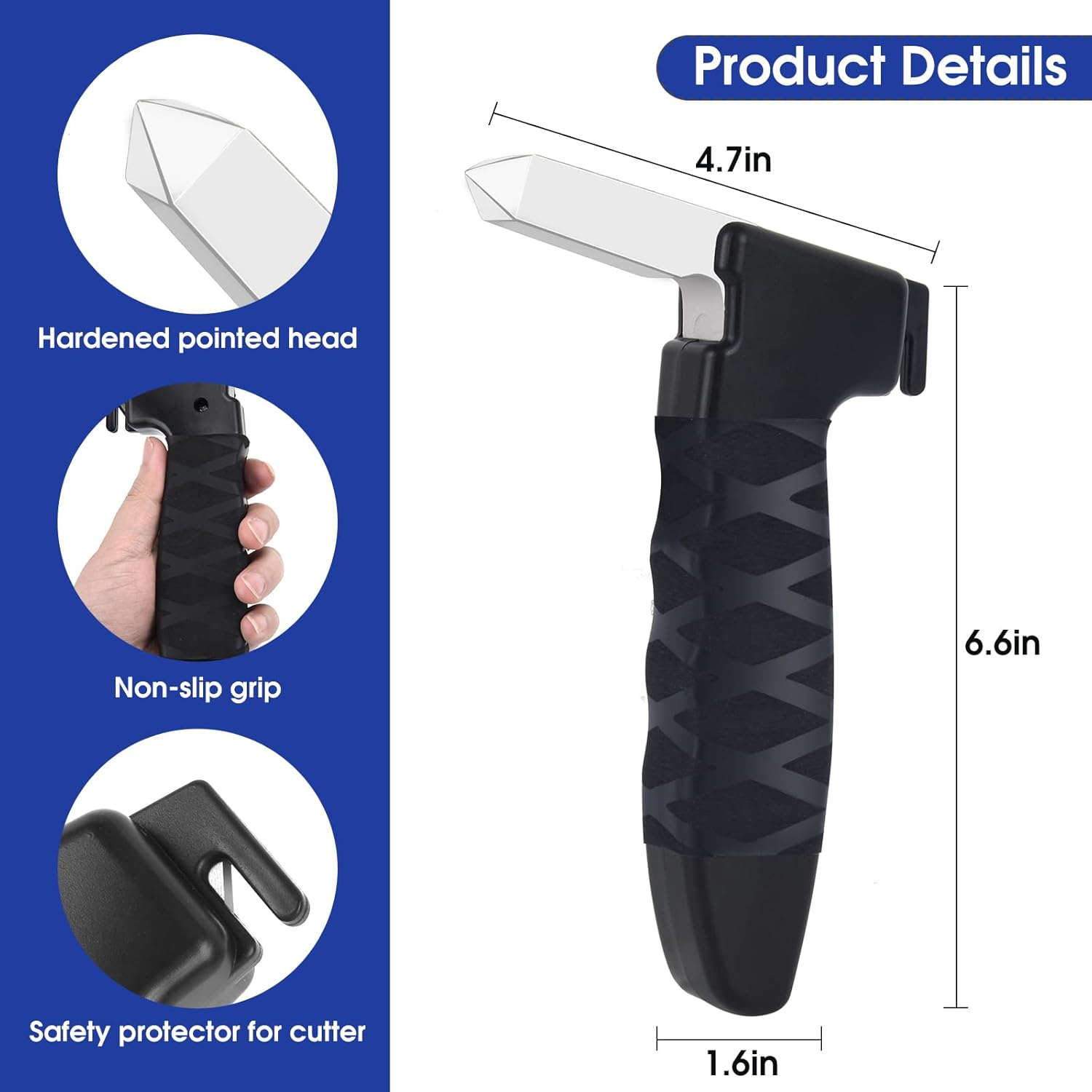 - 【MULTIFUNCTIONAL MATERIAL] The car door handle adopts a 3 in 1 design, the metal tip can be used to break the car window when in an eTHEmergency, meanwhile there is a small blade design in the upper groove of the handle,which can protect users from any harm during normal use and quickly cut the seat belt for escape when in emergency.