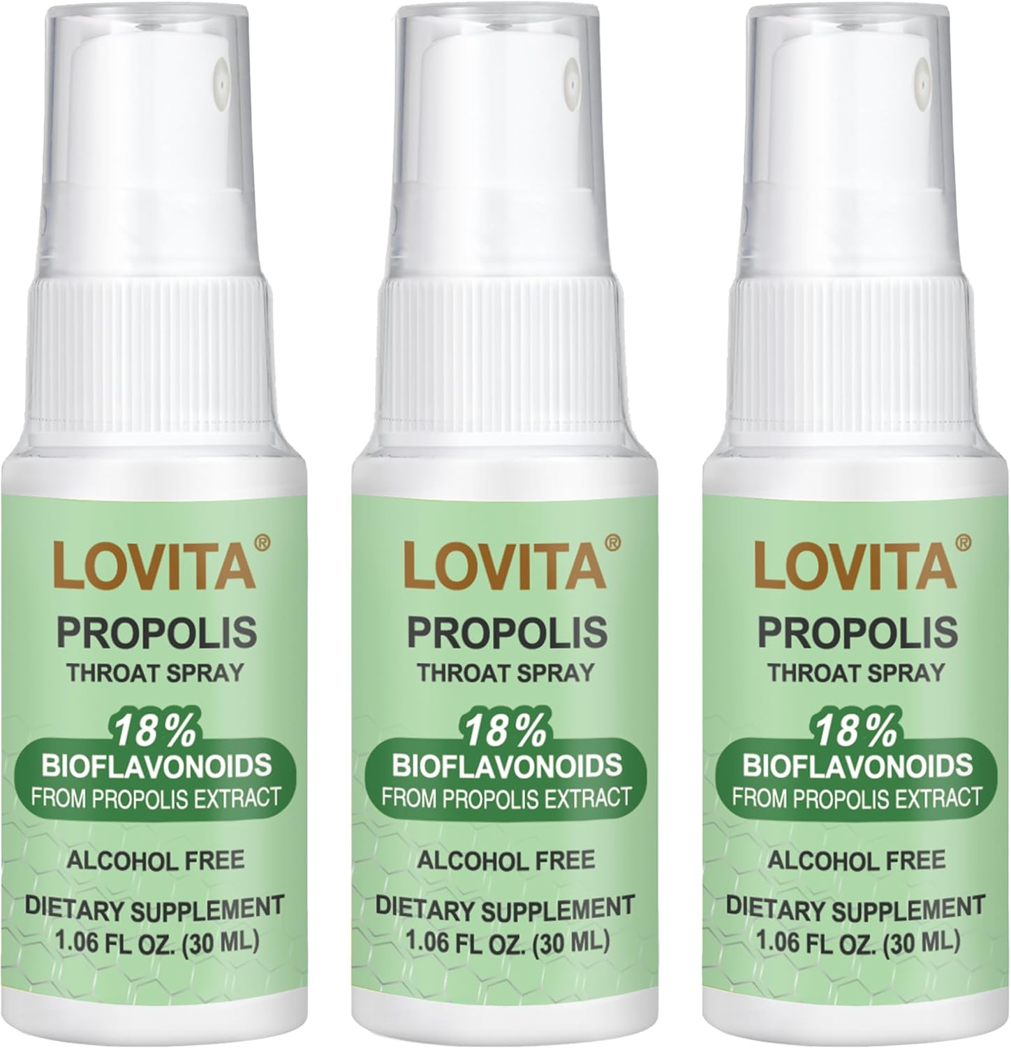 Lovita Bee Propolis Throat Spray, 18% Bioflavonoids, Alcohol-Free, Immune Support, Throat Soothing, Antioxidant, Gentle Taste, 1 Fl Oz (Pack of 3)