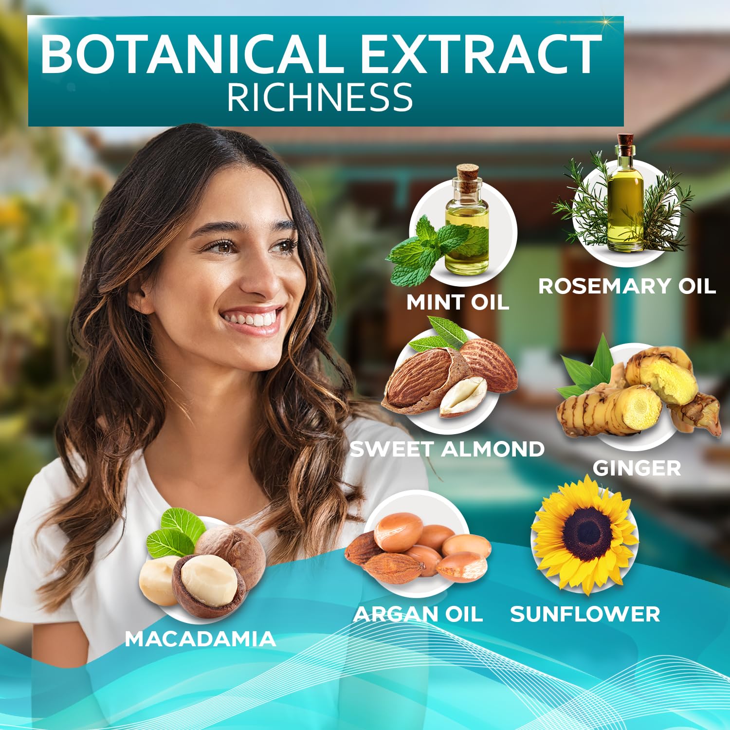 - BOTANICAL EXTRACTS: More than simply a mint and rosemary hair mask, this dry hair treatment is enriched with botanical extracts to deliver nutrients from root to tip. Our hair mask for dry hair also contains Moroccan argan oil for a sleek appearance as well as ginger extract to promote scalp circulation. What’s more, Bellisso’s rosemary mint hair strengthening products feature macadamia oil to nourish and protect.