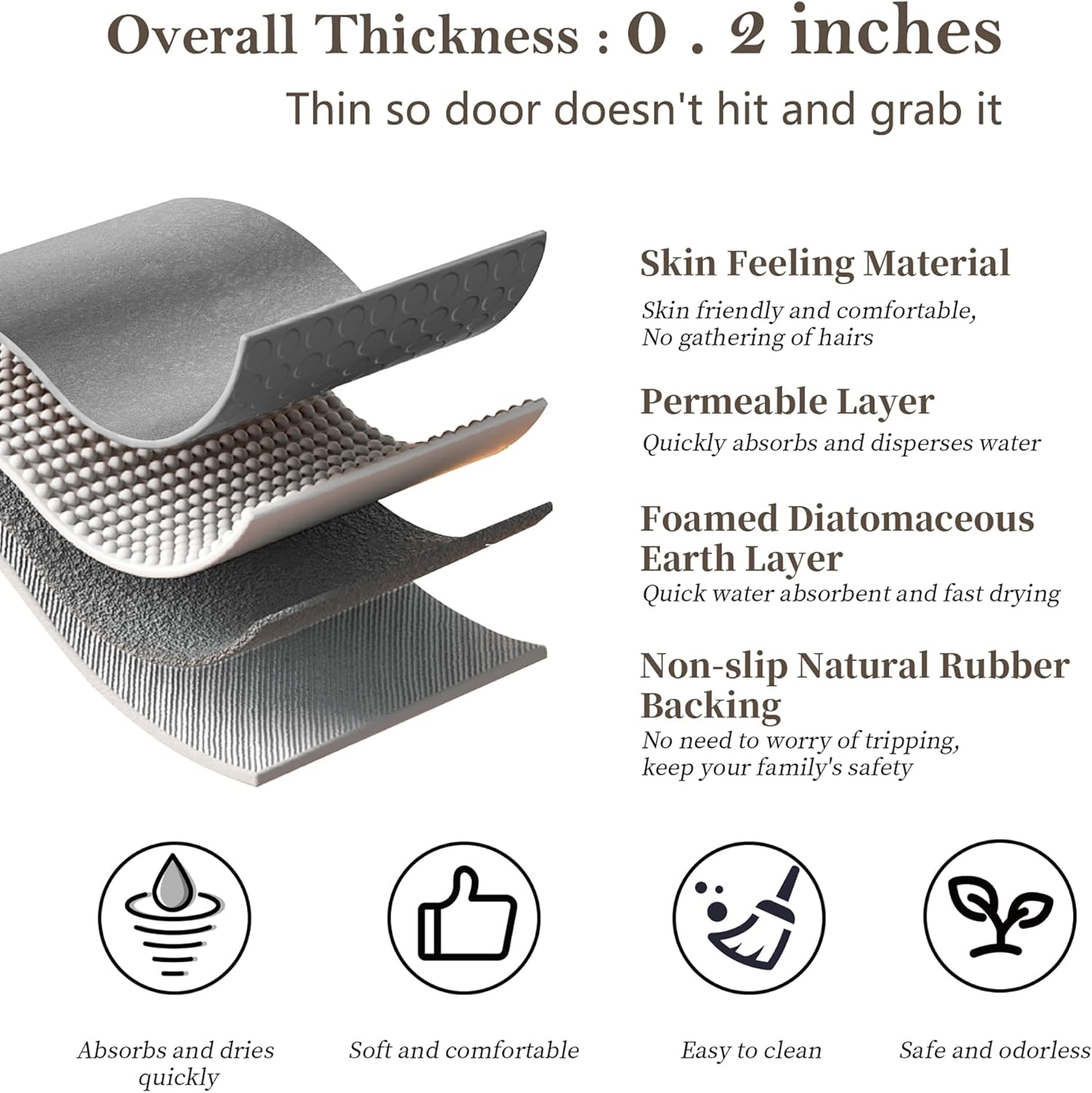 - 【High Quality & No shedding】Our super absorption bath cushion stone design is combined with a faux suede surface. The smooth and thin bath mat surface eliminates the problems of fiber dropping, fuzzy pilling, fiber sinking, fading, wear and hair hiding. Thin bathroom rugs fit under door, Friendly to robot vacuum cleaners, it will not get entangled in the fibers and stop working.
