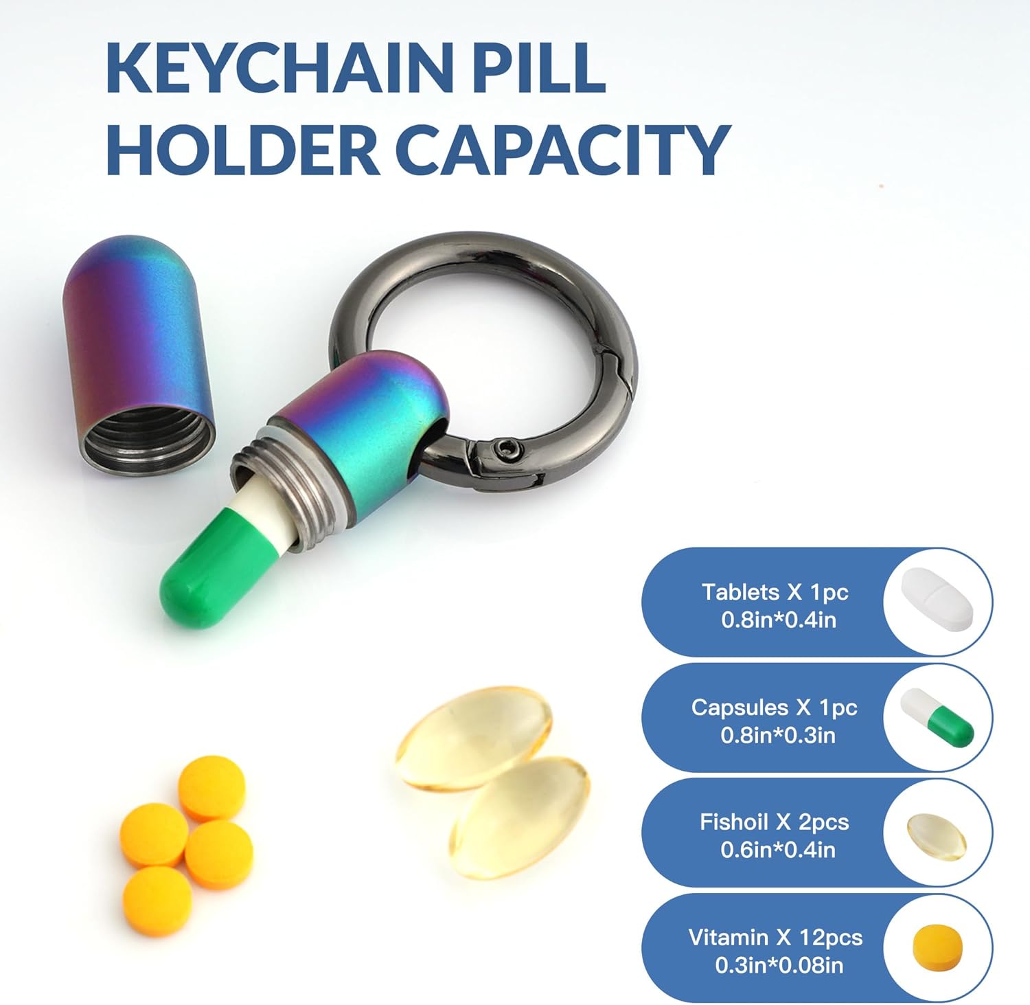 - PERFECT PILL HOLDER: Titanium alloy keychain pill case is light, durable, corrosion-resistant, non-toxic for direct pill contact, safe storage.