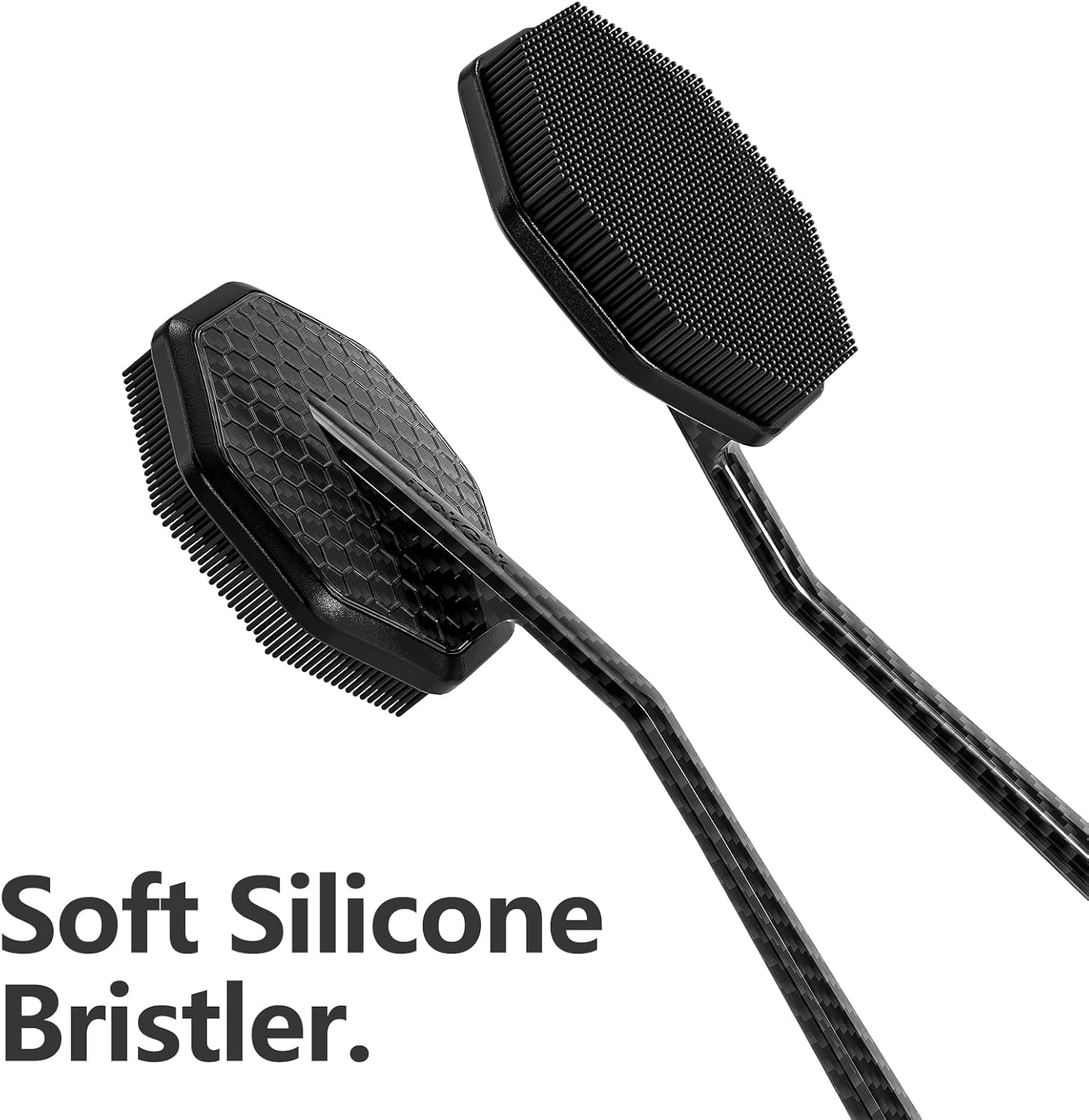 iTokGoK® Silver-Infused Carbon Fiber Silicone Back Scrubber with Long Handle Back Brush for Shower,Back Brush Long Handle for Men and Women,Ergonomic No-Slip Handle, Long-Lasting (Carbon Fiber)
