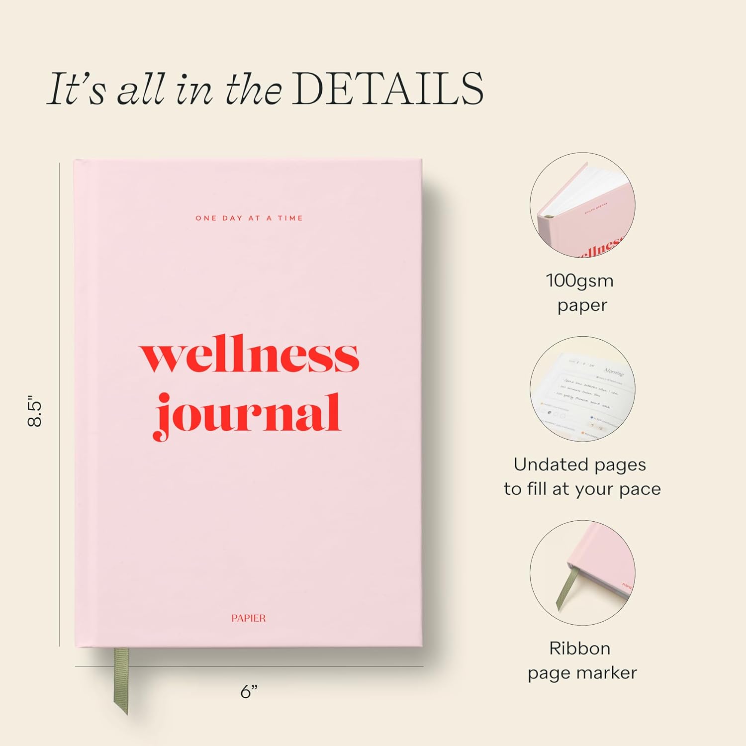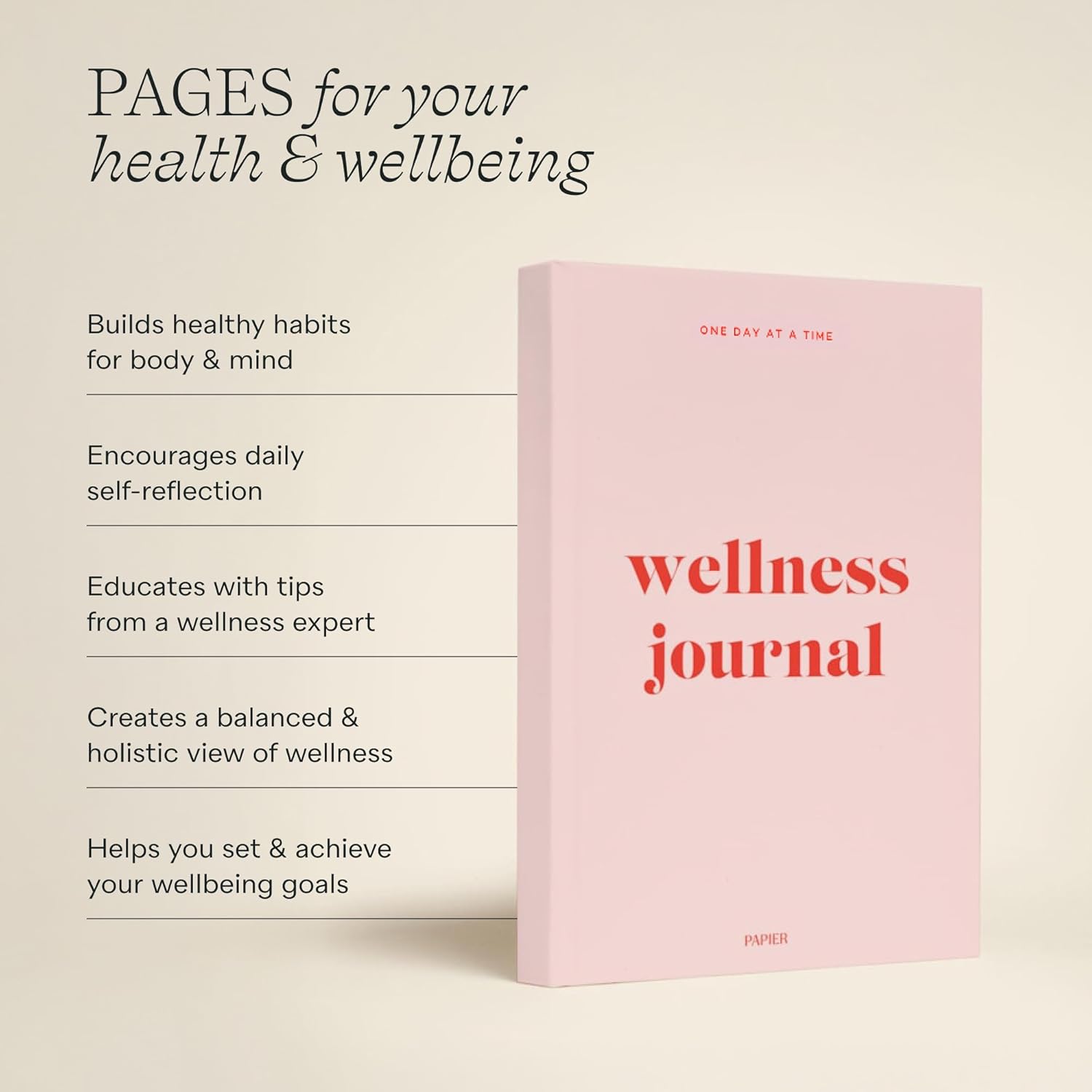 Papier Daily Wellness Journal Diary - Baby Pink, 8.46" L x 6.02" W | Hardback Cover Wellbeing, Gratitude & Mindset Diary for Personal Growth, Mindfulness & Reflection | Track Goals, Sleep & Lifestyle