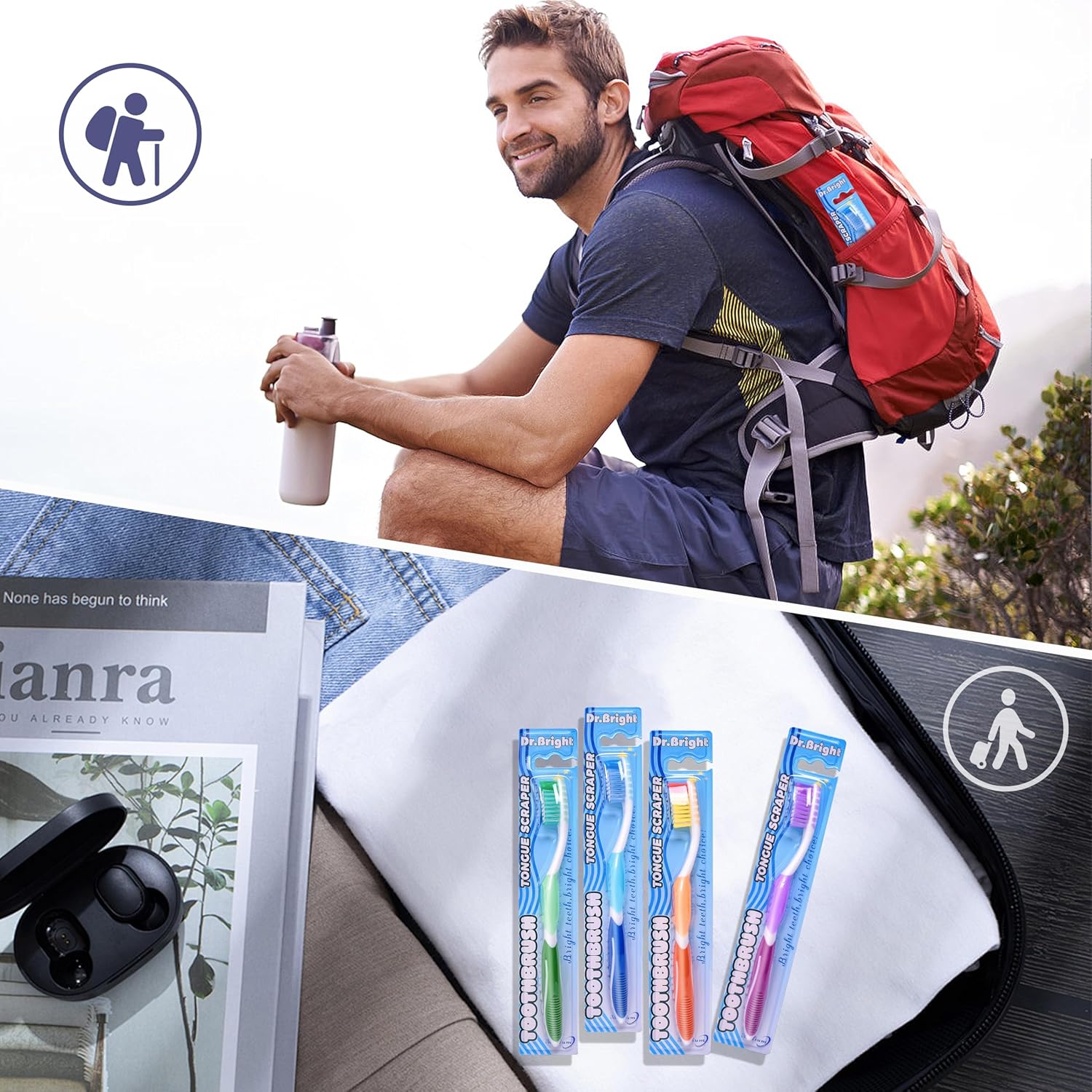 - CARE FOR OVERALL ORAL HEALTH:Dr.bright has carefully designed this medium toothbrush, it has a comprehensive oral care program. While having medium bristles, there is a tongue scraper on the back of the toothbrush head.Effortlessly remind you to maintain oral hygiene every time you brush your teeth