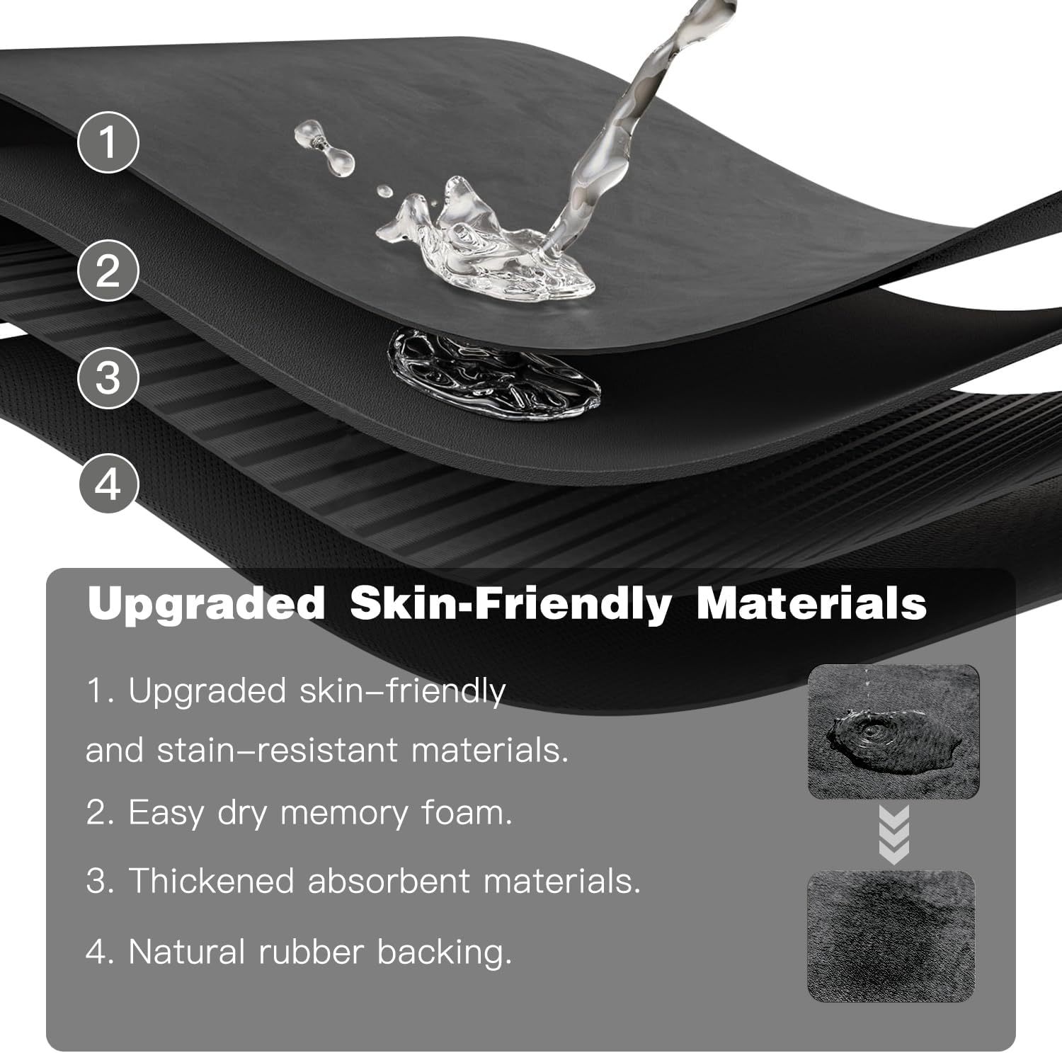 - Indulge in Luxury and Comfort: Our bathroom mat features a sleek, modern design that absorbs water efficiently, even though it's not fluffy. Its thin profile fits under doors easily, making it an ideal choice for small bathrooms with limited space. Step onto our soft, cozy bath mat after your shower and feel the comfort embrace your feet