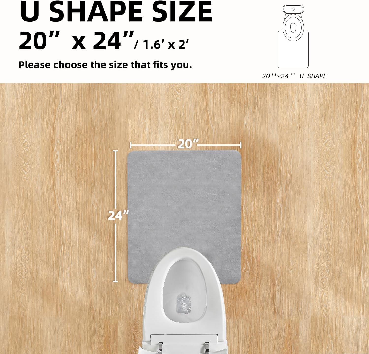 Toilet Rug, Thin Toilet Rugs U Shaped Washable Non Slip Absorbent Quick Dry Low Pile Toilet Mat, 20"x24" U Shape Light Grey