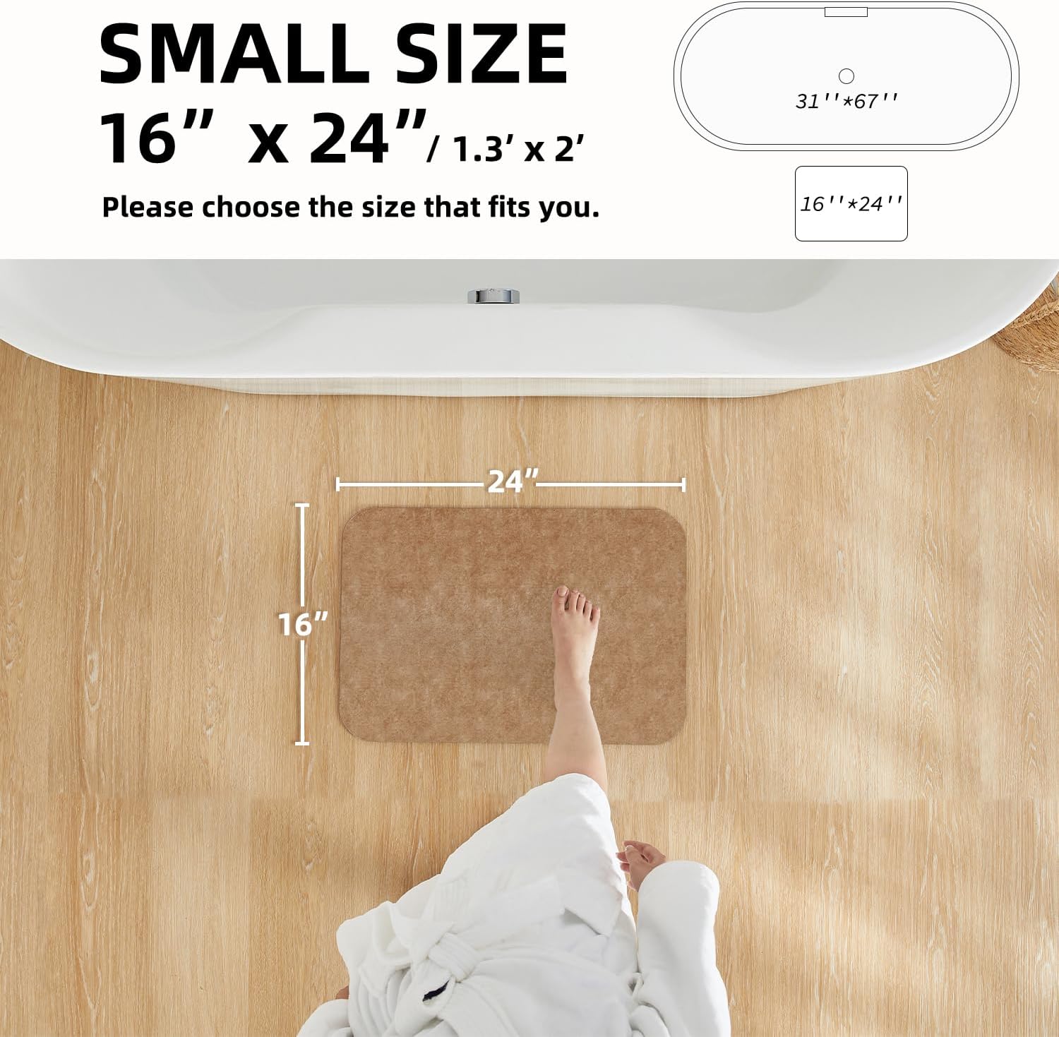 Bathroom Mat Quick Dry, Bathroom Rugs Non Slip Washable Thin Absorbent Bath Mat Fits Under Door Bathroom Floor Mat Perfect for Bath, Shower, or Sink 16"x24" Camel