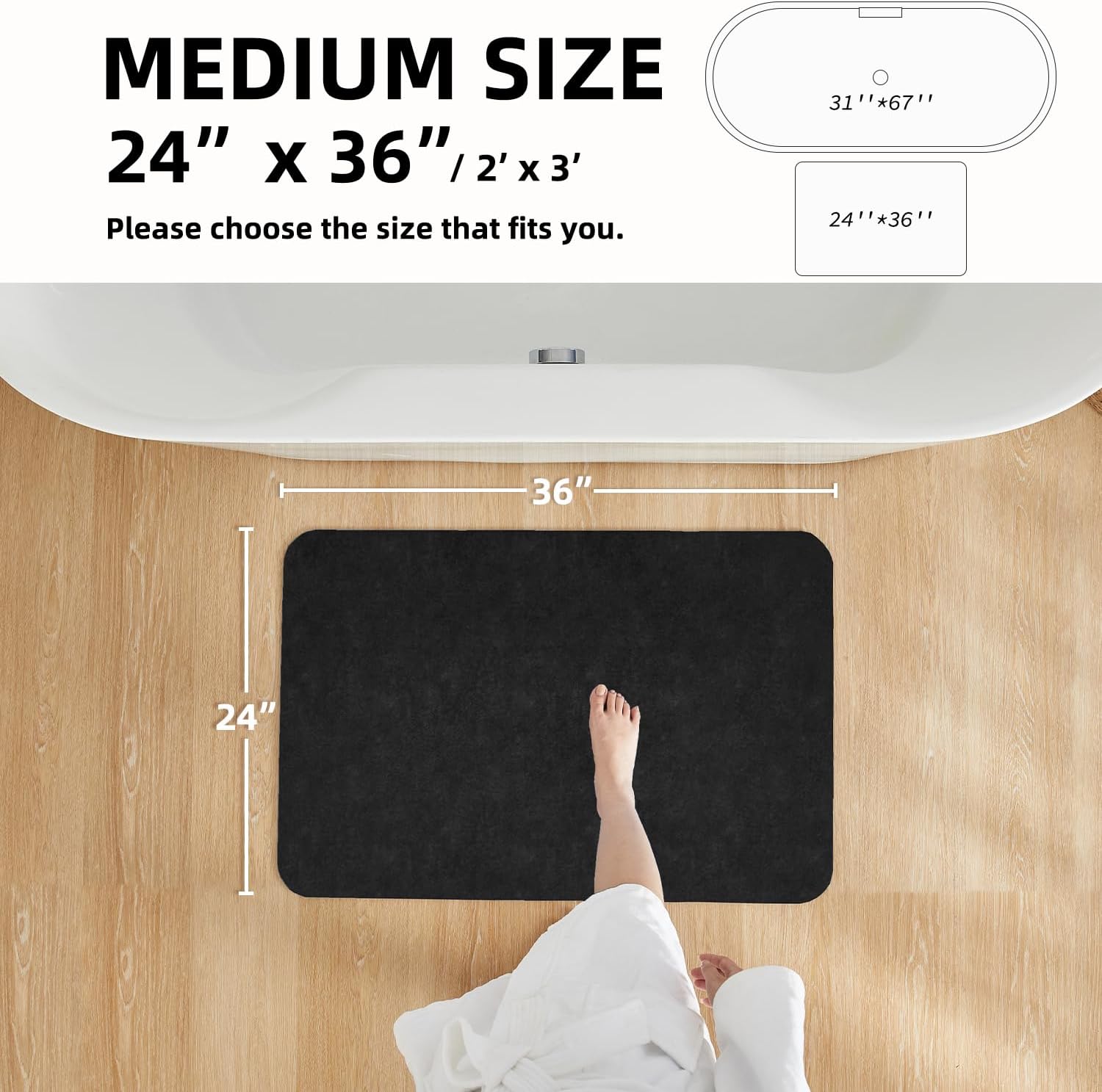 Black Bath Mat, Bathroom Rugs Non Slip Washable Thin Absorbent Quick Dry Bath Mat Fits Under Door Bathroom Floor Mat Perfect for Bath, Shower, or Sink 24"x36" Black