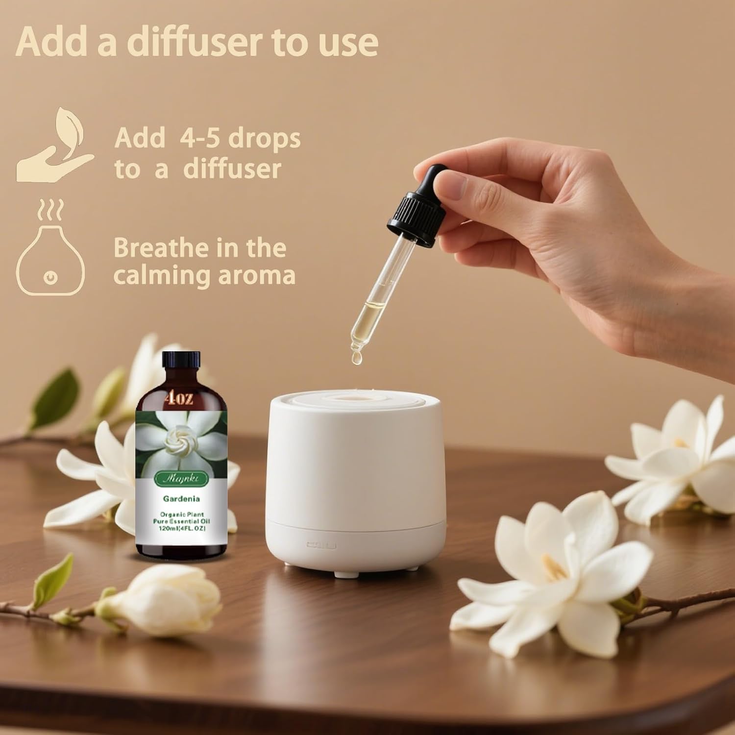 Gardenia Fragrance Oil-Gardenia Essential Oil 4.33oz (130ml)-100% Pure Natural Scent for Diffusers, Candles, Soap Making & Aromatherapy-Relaxing Home & Gift Essential Oil for Bath, Massage