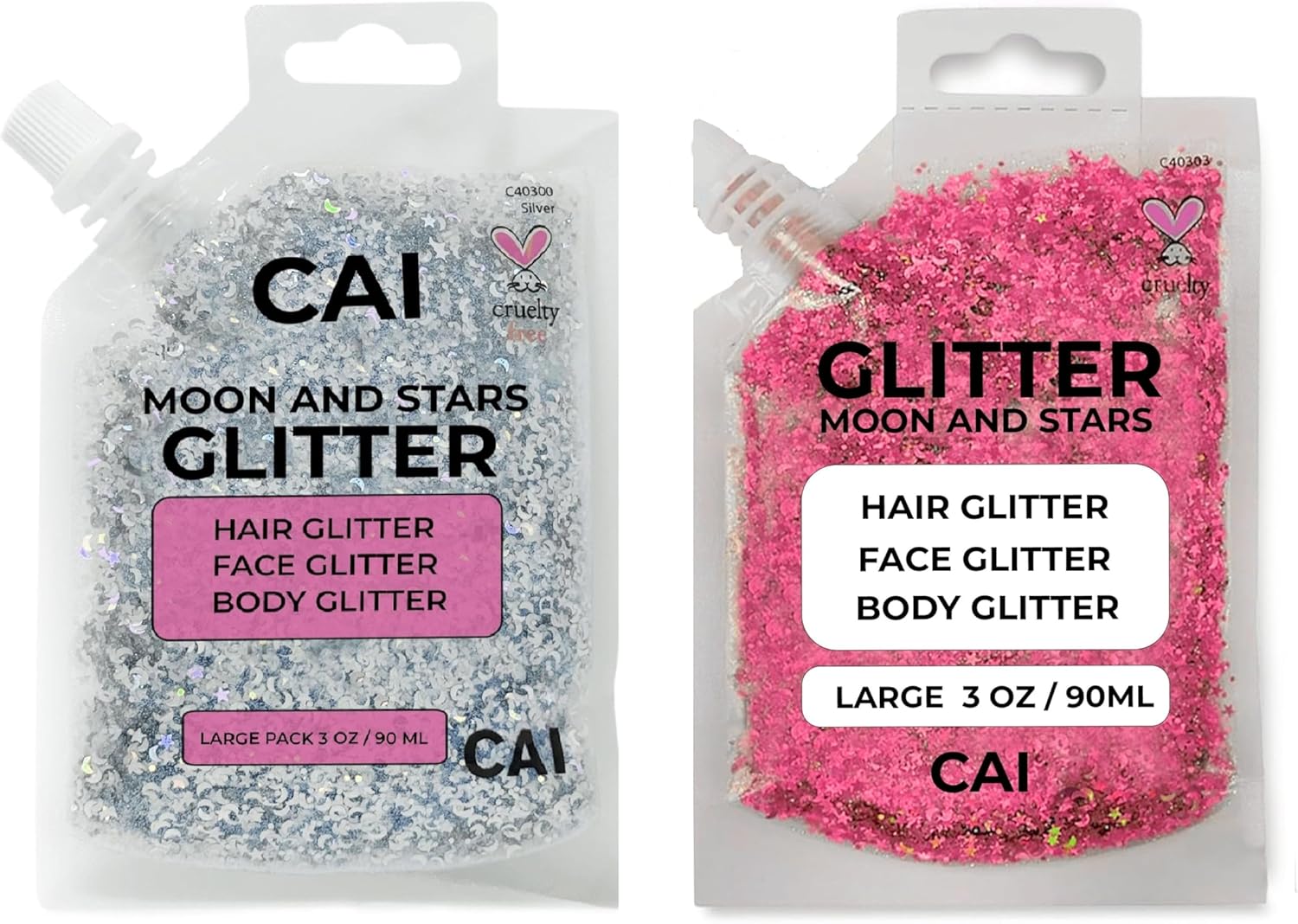 - Face Glitter Gel That Pops: Shine bright with bold face glitter featuring moon and star shapes in a chunky, holographic mix. Easy to blend over cheeks and eyes, it’s ideal for Halloween makeup glitter, raves, or cosplay without irritation or fallout.