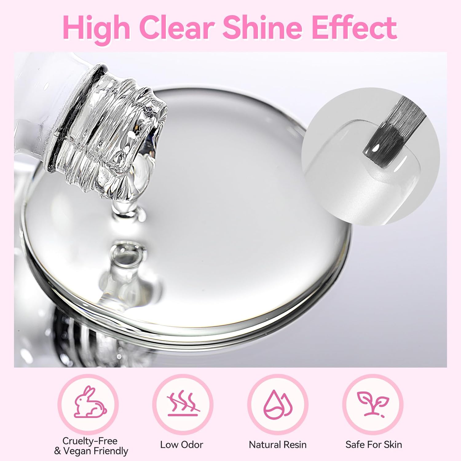 Born Pretty Gel Top Coat,15ml Gloss Top Coat and Nail Glue for Tips Set,No Wipe Super Top Coat Not Chip or Peel and Long Lastingfor Nail Art