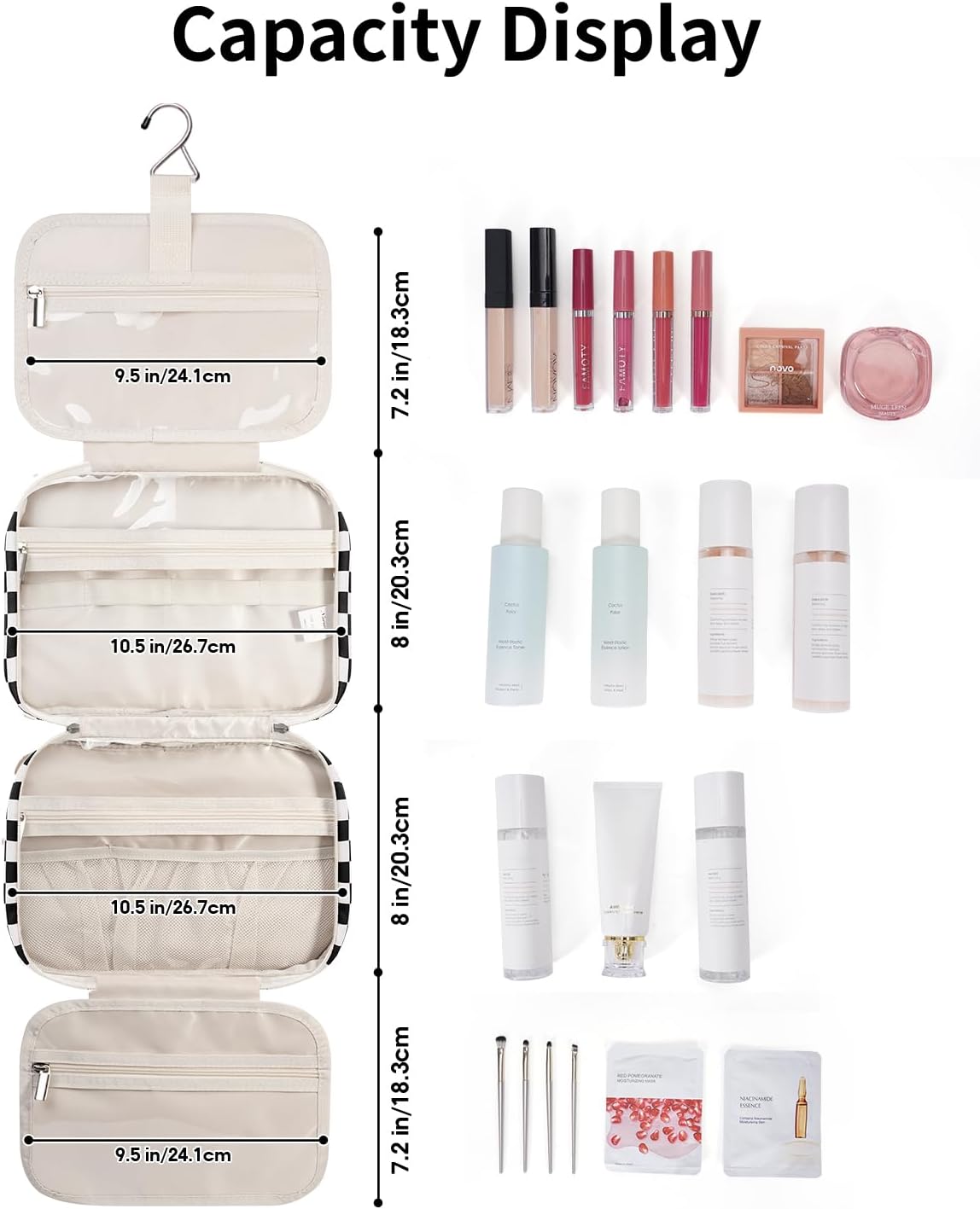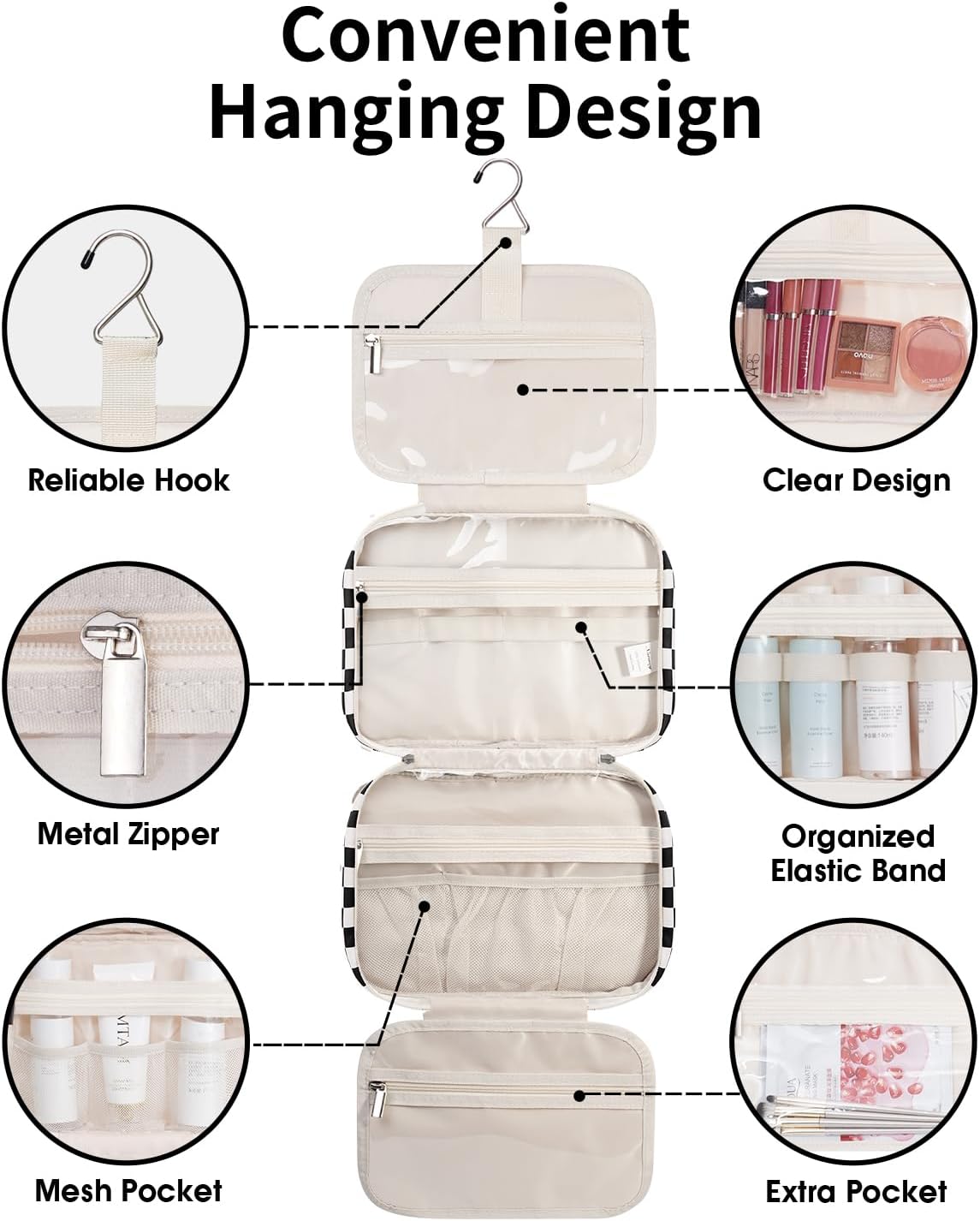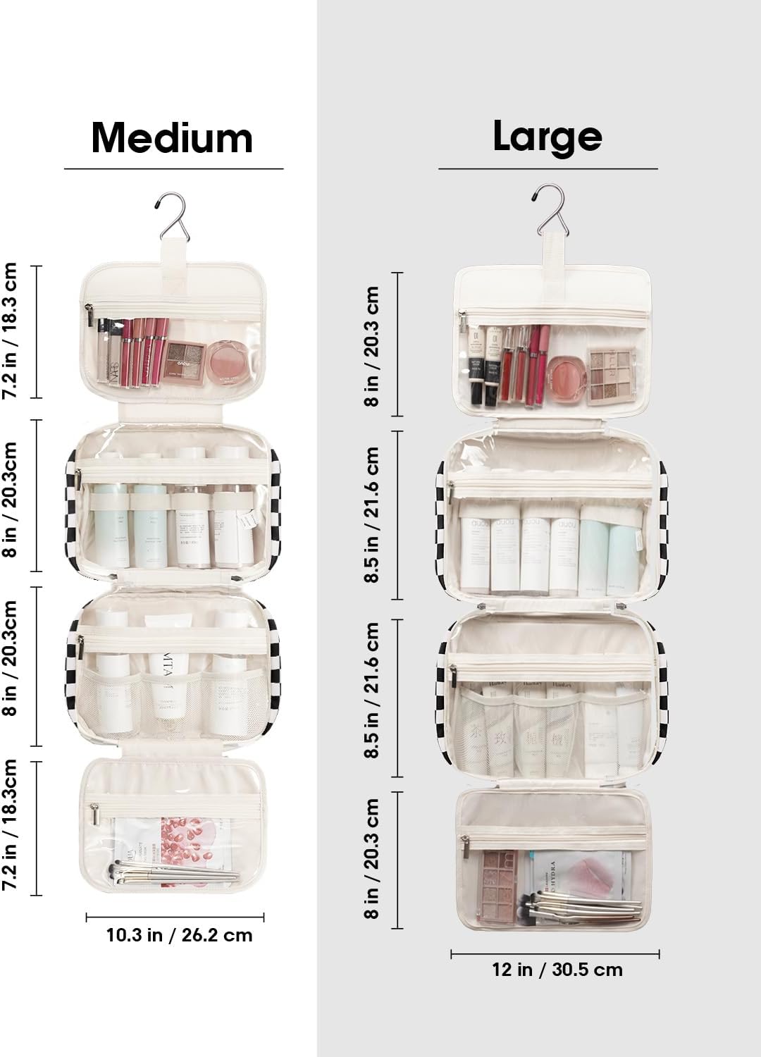Narwey Hanging Toiletry Bag for Women Travel Makeup Bag Organizer Toiletries Bag for Travel Size Essentials Accessories Cosmetics (Black Checkerboard (Medium))
