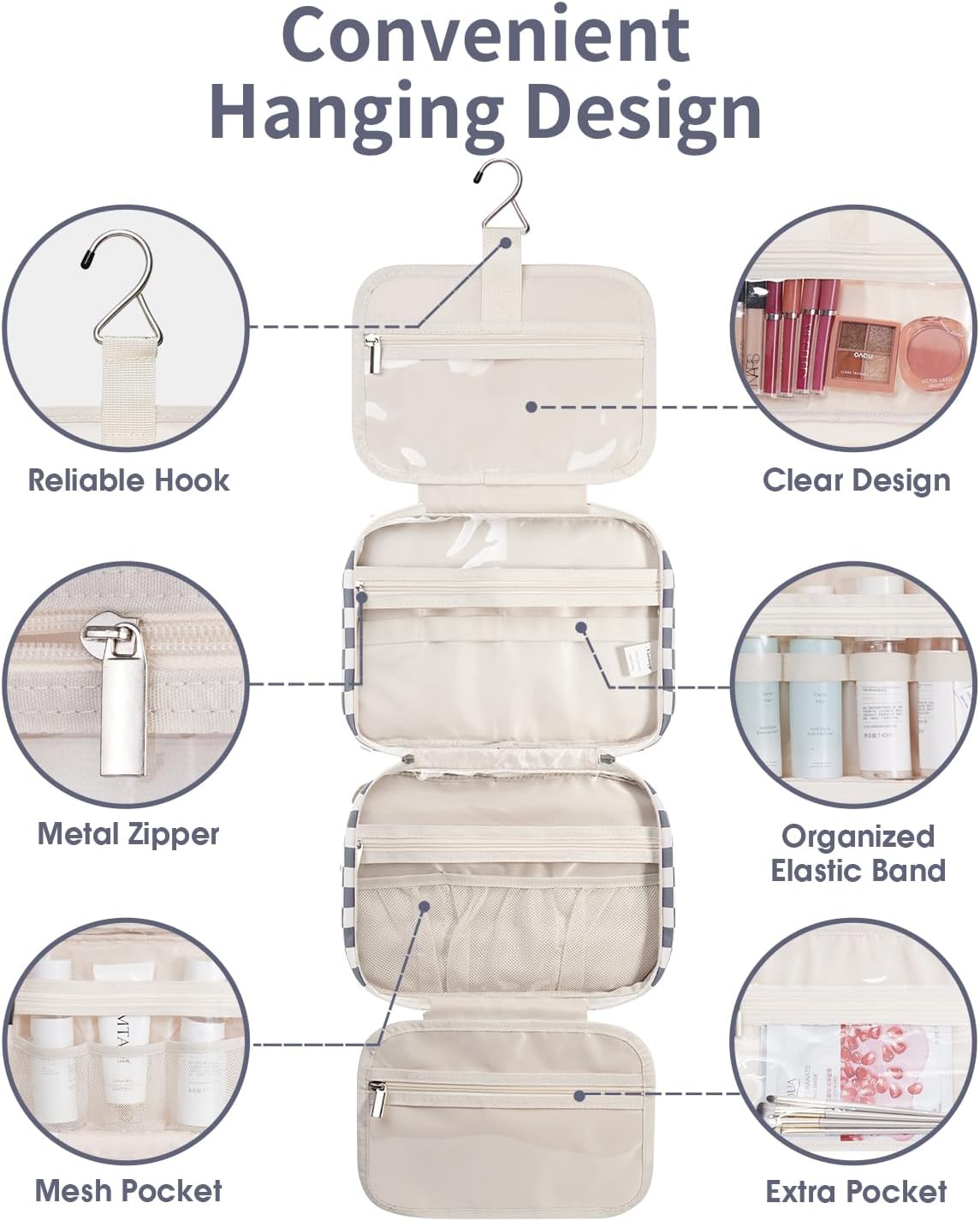 Narwey Hanging Toiletry Bag for Women Travel Makeup Bag Organizer Toiletries Bag for Travel Size Essentials Accessories Cosmetics (Grayish Blue Checkerboard (Medium))