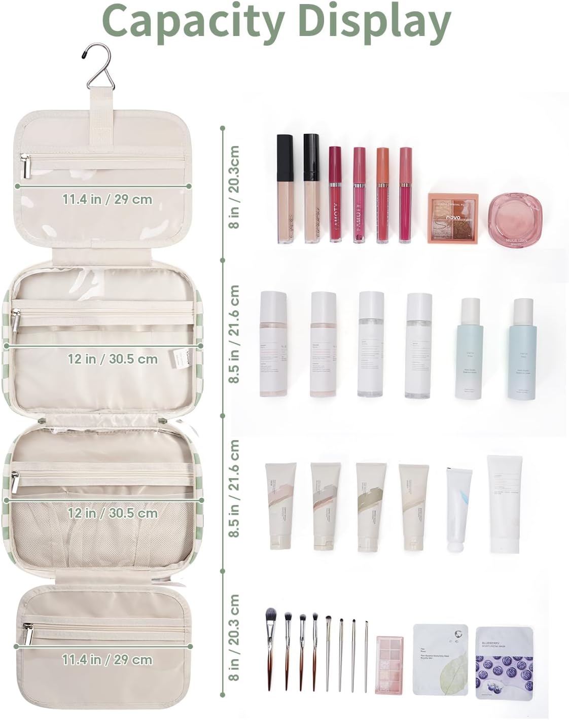 - NOT BULKY DESIGN - Large Capacity yet compact design, weighing 16 ounces. large metal hook allows hanging the toiletry case from towel rack, coat hook or wherever is available, making your toiletries and cosmetics displayed well for easy access