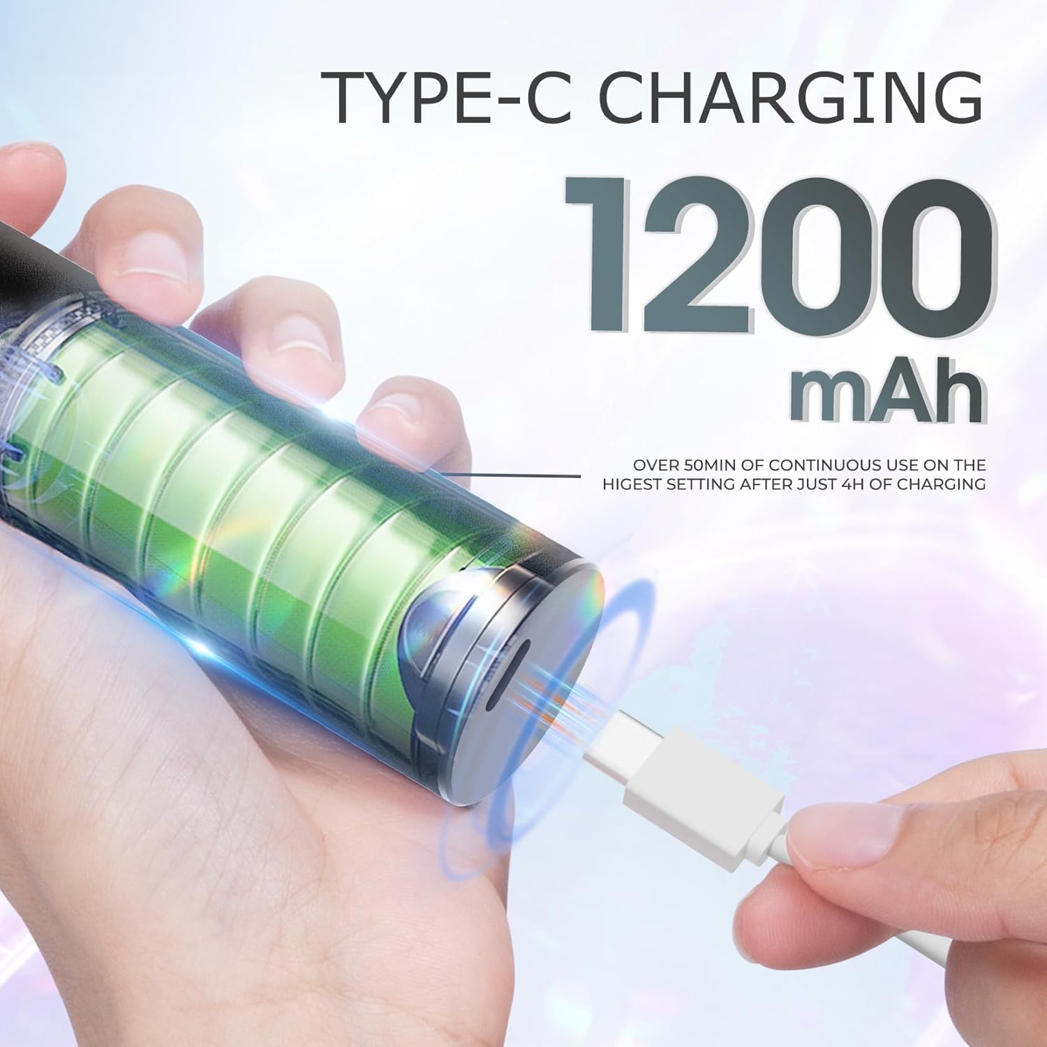- Portable & Rechargeable - krofaue electric callus remover is charged by Type-C port, convenient for charging. With a 1200mah high-capacity battery, our electric feet callus removers rechargeable can continue to work for 50 minutes on the highest gear and 2.5 hours on the lowest gear. When charging, charging indicator light (above the on/off button) flashes, stop flashes when fully charged, can be fully charged in about 4 hours.