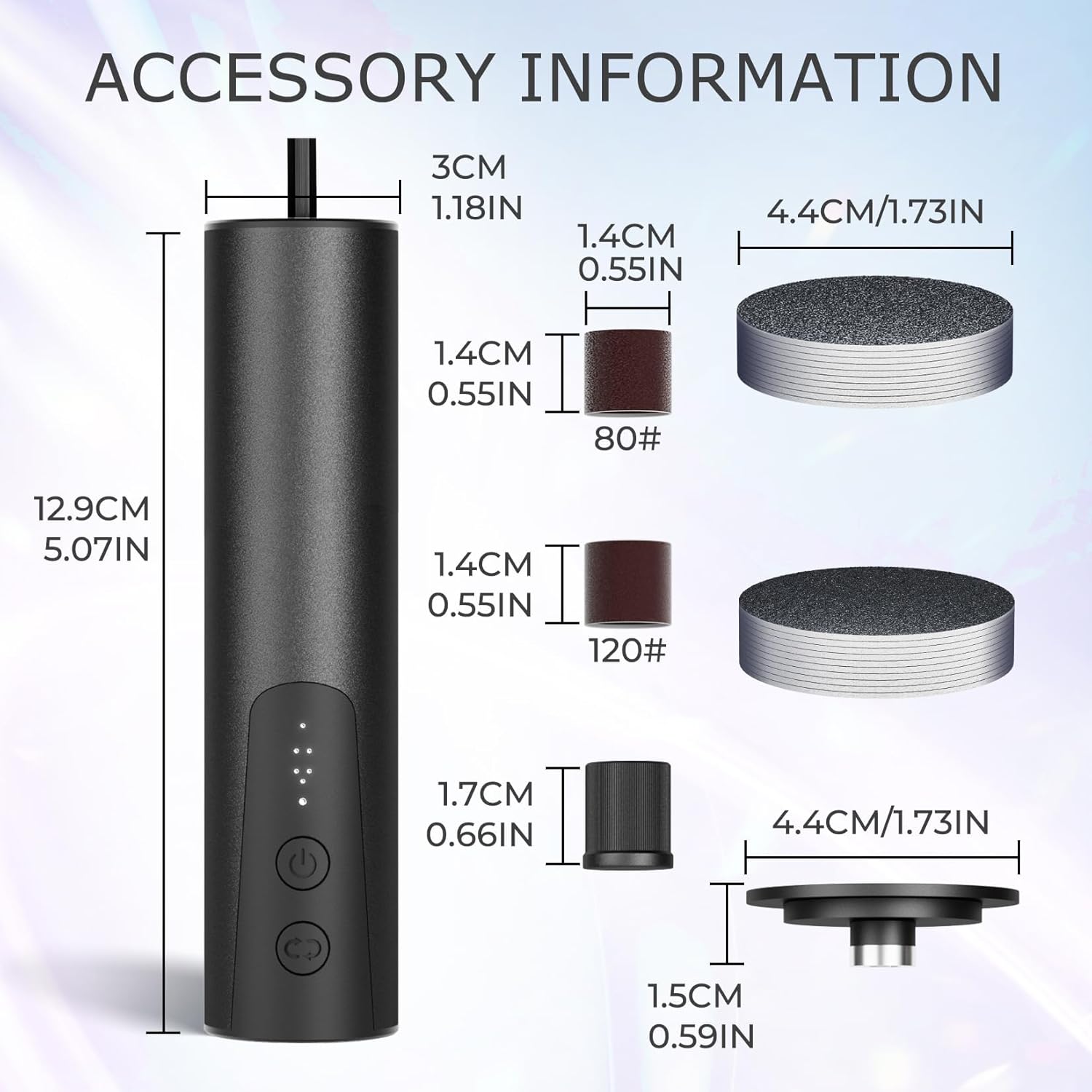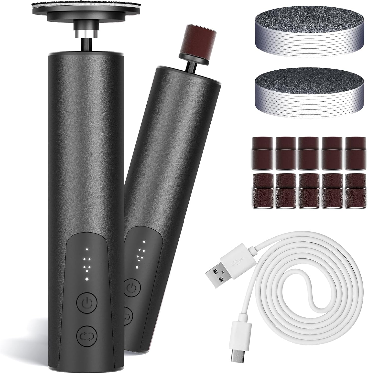 - For Whole Family - Our electric foot file kit with natural volcanic foot grinding stone grinding pads as the core, divided into 20pcs fine sanding pads (coarse sanding pads + fine sanding pads) and 16pcs brown sanding rings (two sizes: 10*120# and 10*80# ). All abrasive discs of krofaue electric callus remover are disposable and replaceable design. Our electric foot file will get a little hot with prolonged use. This is a normal phenomenon.