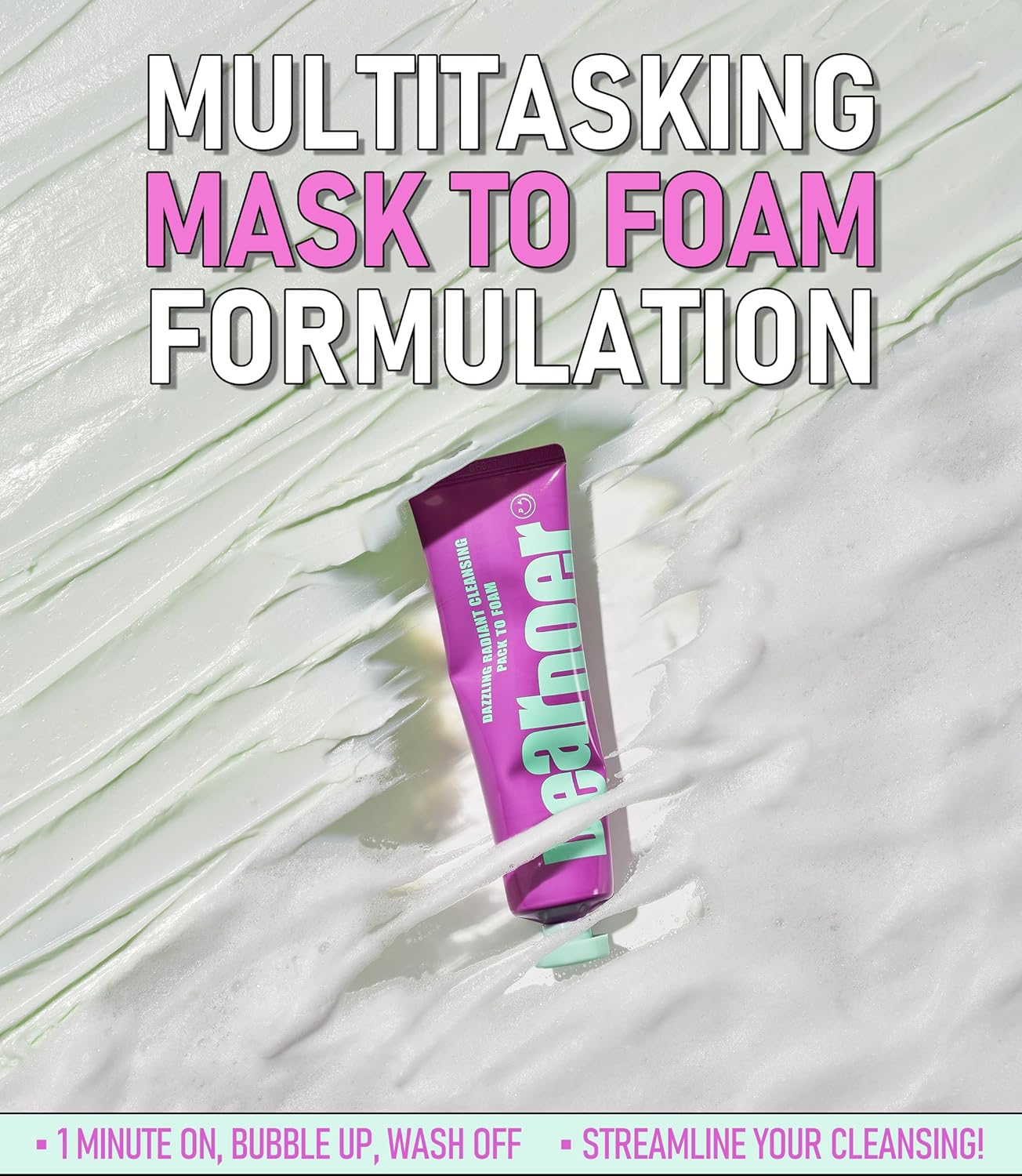 Dazzling Radiant Cleansing Pack to Foam – 3-in-1 Wash-Off Mask & Exfoliator & Cleanser w/Fresh Grape Extract & Niacinamide – Vitamin C and Resveratrol for Dry, Dull Skin (3.38 fl oz)