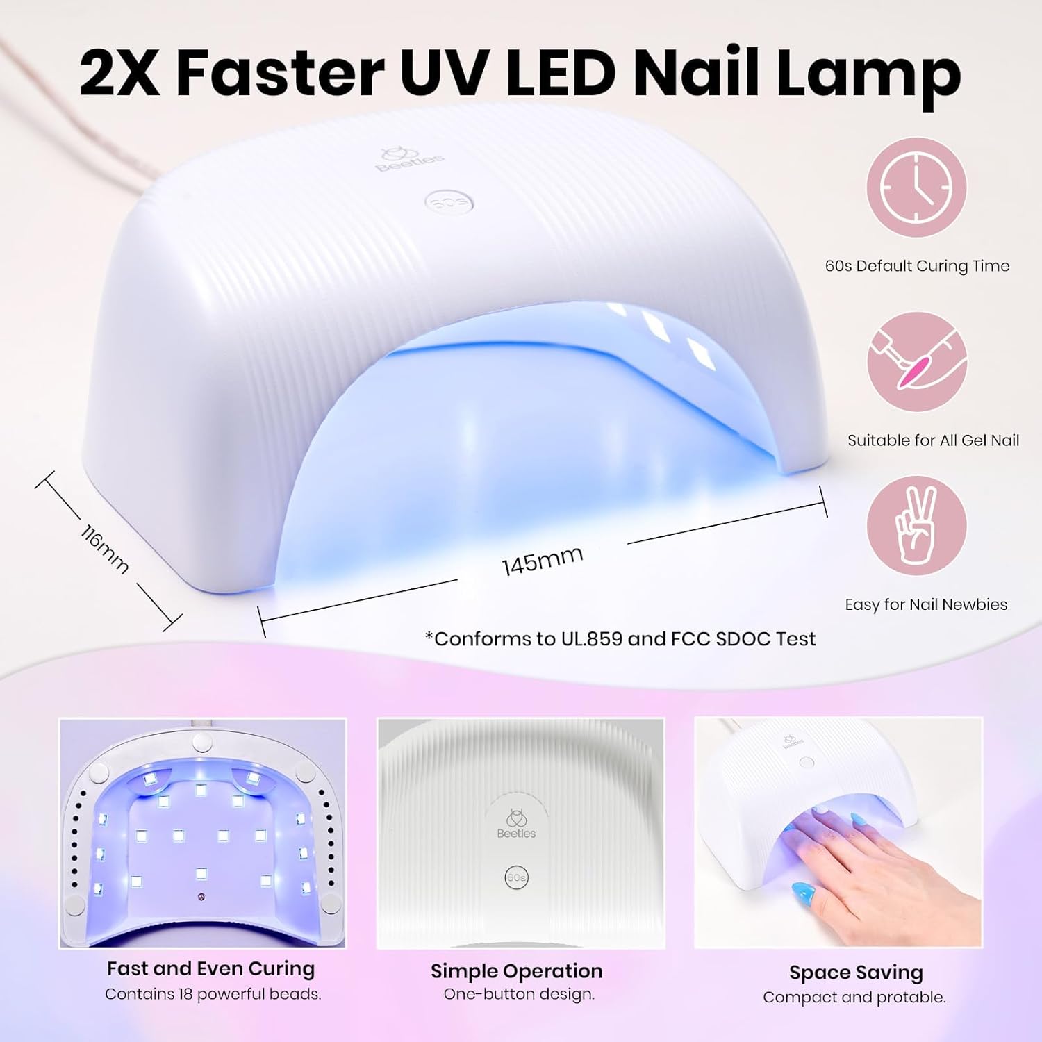 - Easy to use & Friendly to Beginners: Our products can help you complete the entire process of manicure. With high-performance technology, our Nail Lamp can quickly cure various gel nail polish and base coat all-round uniform. The automatic sensor on the lamp controls the light, turning on/off the light when you insert/unplug your hand, effectively saving energy and the lamp has a longer service life. In addition, this nail kit includes other tools you may need for nail removal.