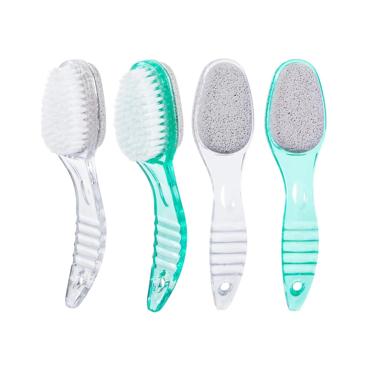 4 Pcs Foot Brush for Shower with Handle 2 in 1,Ooloveminso Large Foot Pumice Stone Brush Scrubber Foot File Calluses Remove Suitable for Horniness Foot Spa,Foot Care Smooth Skin (Green&Transparent)