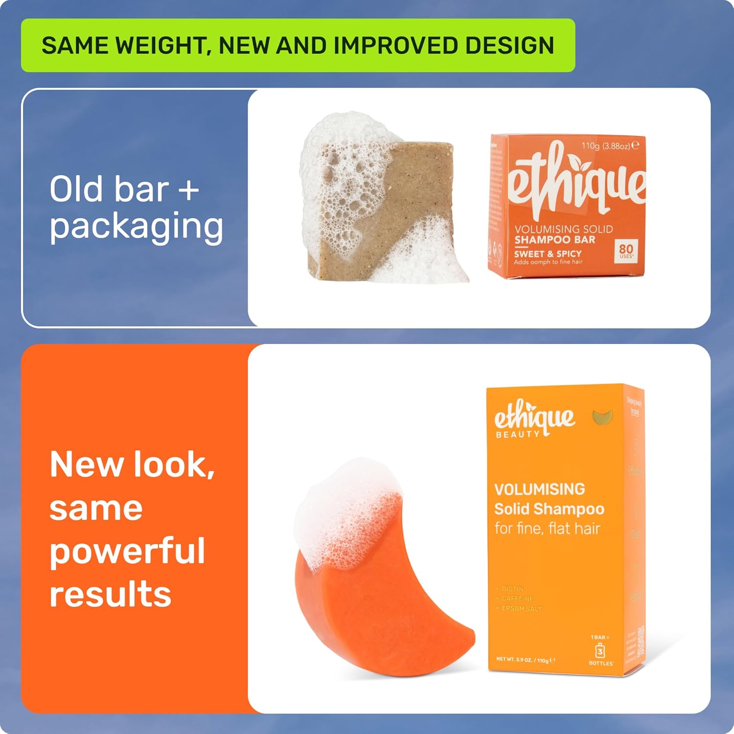Ethique Volumizing Shampoo Bar with Biotin for thin, fine hair - Plastic-Free, Vegan, Cruelty-Free, 3.88 oz - Formerly Sweet & Spicy - Formerly Sweet & Spicy