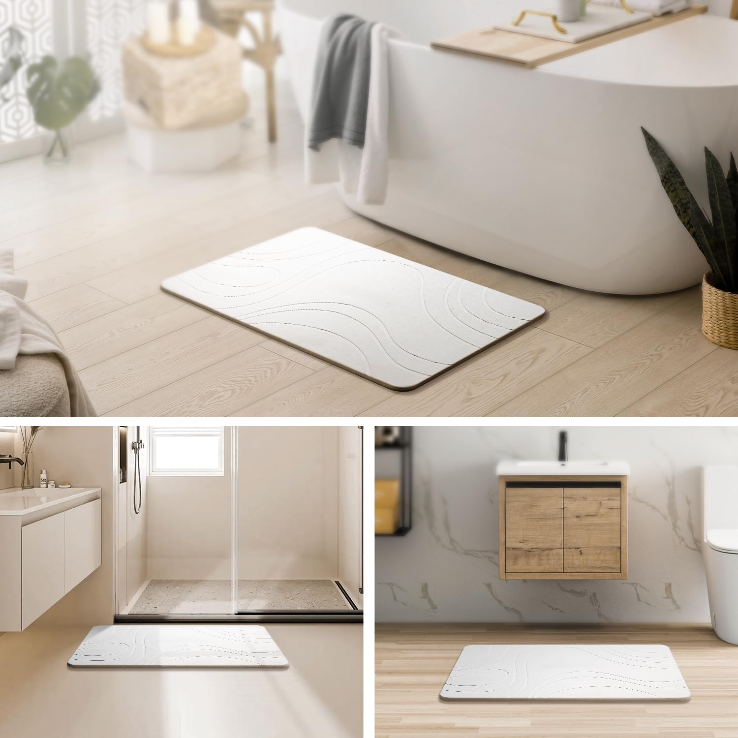 Stone Bath Mat for Bathroom, Quick Dry Diatomaceous Earth Stone Drying Bath Mat, Magic Non Slip Bathroom Shower Floor Mat Modernized Water Absorbing Diatomite White