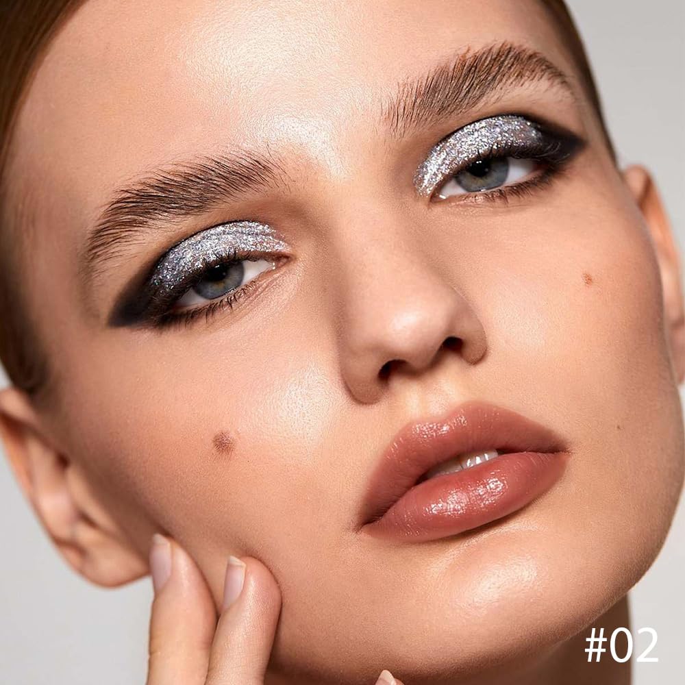 Single Cream Glitter Eyeshadow, Shimmer Eyeshadow Palette, Korean Eye Glitter Makeup, Ultra-Blendable, Sparkle Silver Eye Shadow, Single Shade Metallic Pigmented (Silver)
